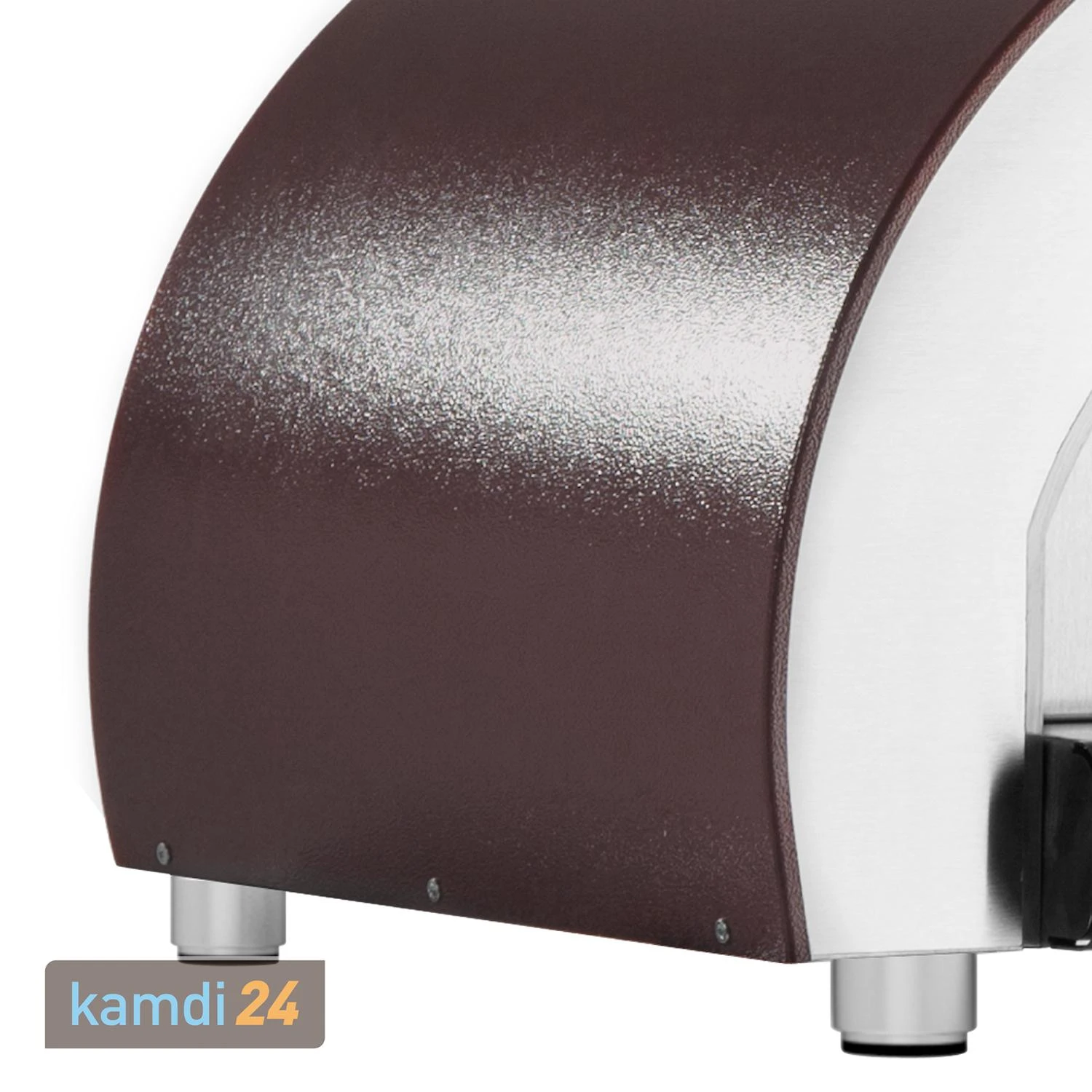 Sie sorgt für eine kurze Aufheizzeit und eine gute Isolierung. Durch die gebogene Form verteilt sich die Wärme in dem schönen gleichmäßig und lässt Ihre Gerichte perfekt werden. Sie können wählen, ob die Kuppel Ihres Pizzaofens Antikrot oder Kupferfarben sein soll. Wählen Sie Ihre Lieblingsfarbe ganz einfach über unser Varianten-Menü.