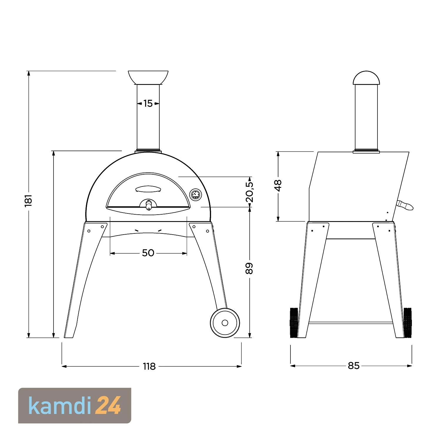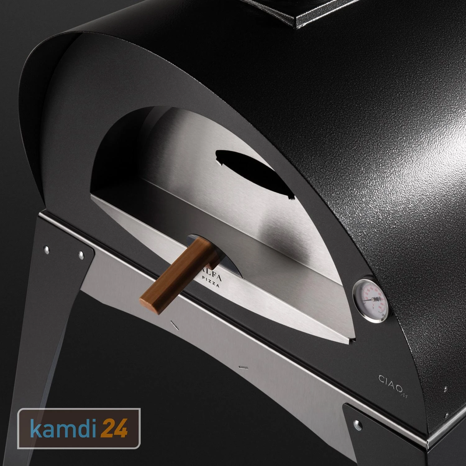 Zu den besonderen zählen die Kuppel aus Edelstahl für eine kurze Aufheizzeit und gute Isolierung sowie die Backfläche aus feuerfestem Stein (Schamott), die sehr robust und abriebfest ist. Den zeichnen weiterhin die Tür mit Holzgriff und Sichtfenster, die zwei Räder zum einfachen Bewegen und der große Backraum aus, der Platz für zwei Pizzen auf einmal bietet.