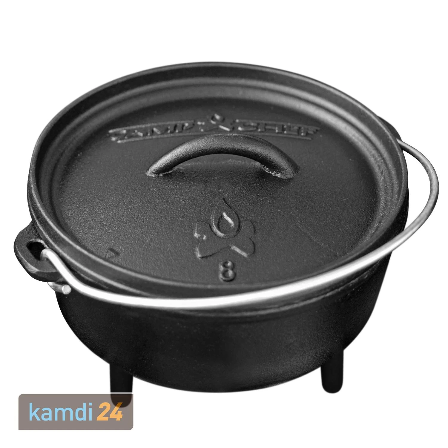 Das Material garantiert eine lange Wärmespeicherung sowie eine gleichmäßige Wärmeverteilung. Damit Sie sofort mit dem Grillen loslegen können, wurden die von Camp Chef mit dem vorbehandelt. Diese spezielle Patina auf der Oberfläche des Topfes schützt Ihre Speisen zudem vor dem Anbrennen. Damit die Oberflächen des Dutch Ovens dauerhaft unbeschädigt bleibt, empfiehlt kamdi24 zur Reinigung den und zur regelmäßigen Pflege den .