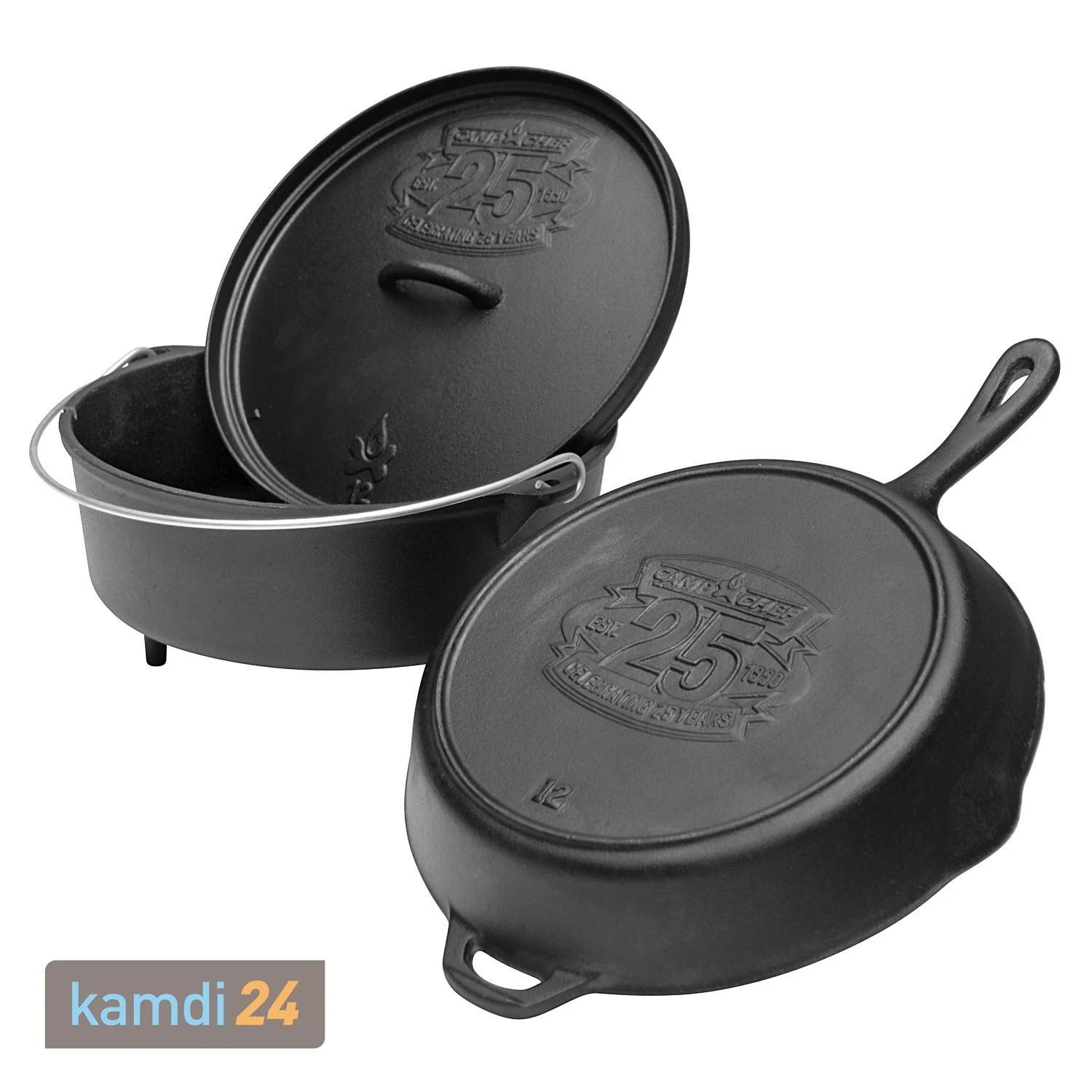 Doch auch wenn Camp Chef Sie noch nicht seit 25 Jahren begleitet, ist das Set die ideale Möglichkeit, die Vorzüge des auszuprobieren. In dem dicht schließenden gusseisernen Topf können Sie mit schnellen Garzeiten nahezu zubereiten. Die Pfanne eignet sich perfekt zum Braten auf offener Glut. Im Set sind Topf und Pfanne also unschlagbar, um Ihre Freunde oder Familie bei der nächsten Gartenparty mit einem leckeren Essen zu überraschen.