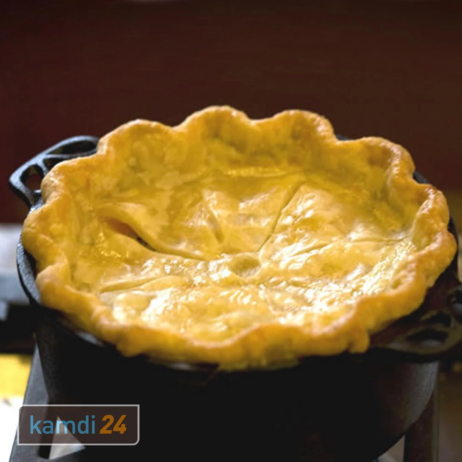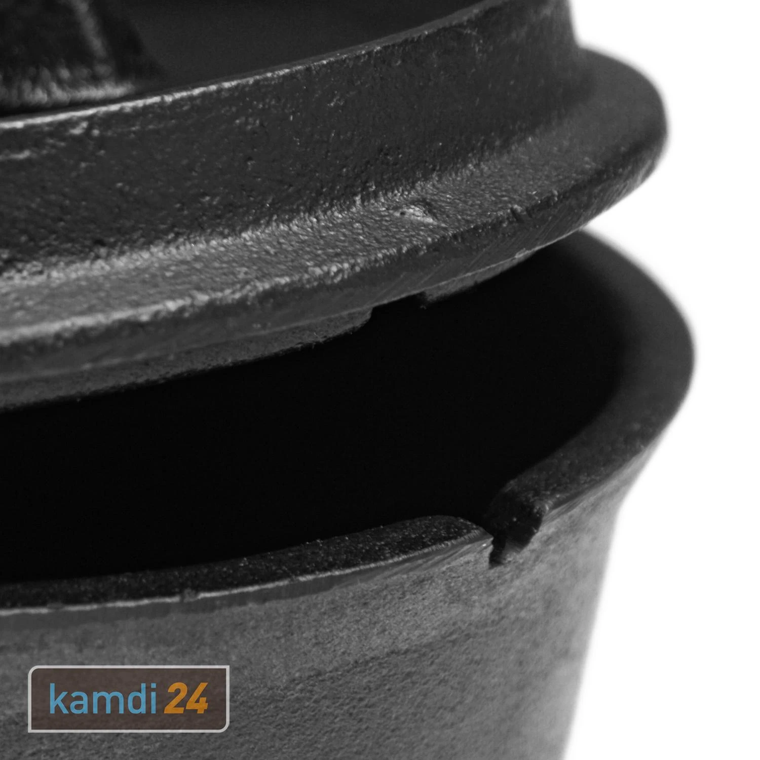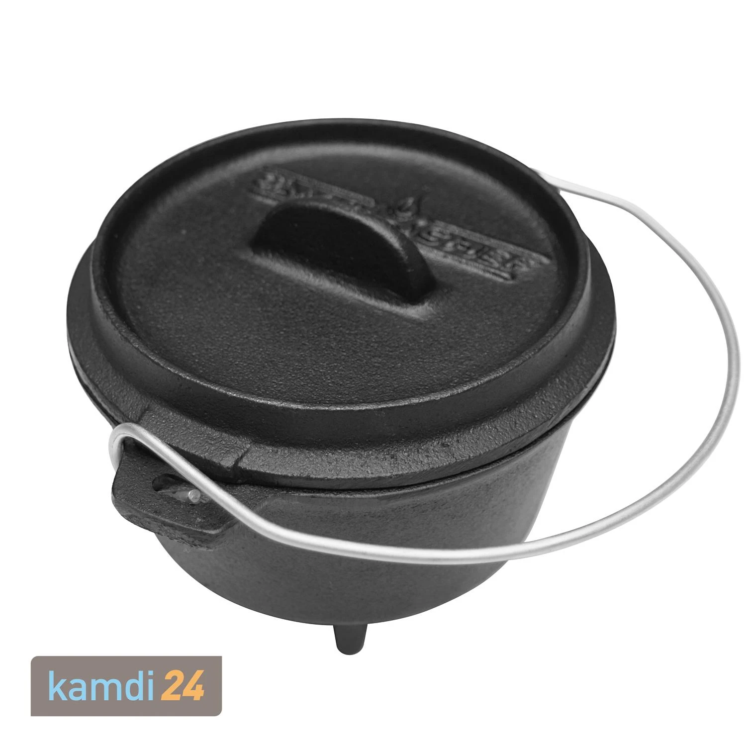 Der eignet sich nicht nur zur Zubereitung von Suppen oder Eintöpfen – Sie können darin nahezu alle denkbaren Gerichte kochen, braten, backen oder grillen. Der dicht schließende Deckel ermöglicht einen Backofen- und Schnellkochtopf-Effekt, wenn Sie darauf glühende Kohlen platzieren. Die gleichmäßige Wärmeverteilung in den massiven Gusseisen-Wänden sorgt für kurze Garzeiten.