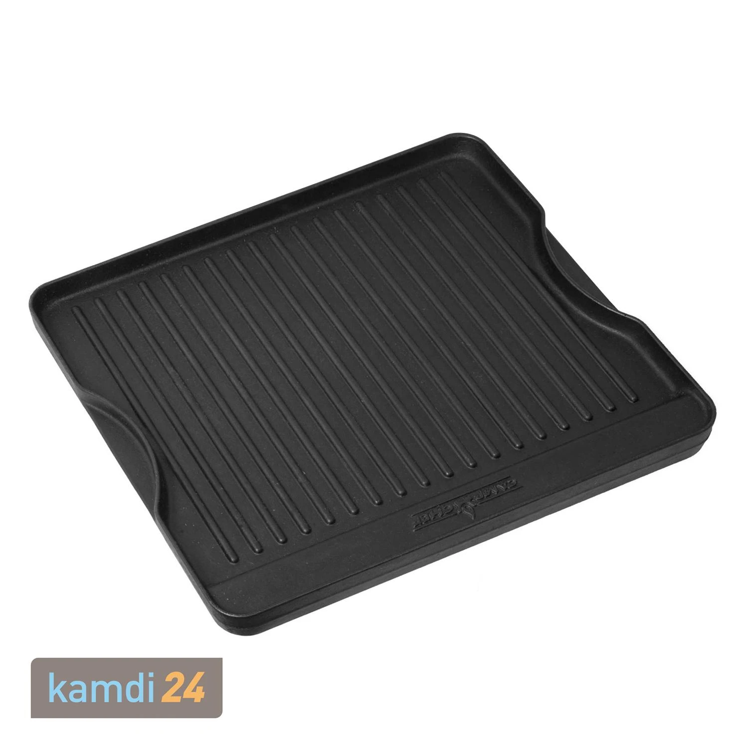 Mit der von sind Sie beim Outdoor Cooking so flexibel wie möglich! Egal ob Fleisch oder Gemüse, süß oder herzhaft – die ist vielseitig einsetzbar. Die eignet sich vor allem für Grillgut, bei dem Fleischsaft oder Fette austreten. Dank der tropfen diese Garflüssigkeiten nicht in die Glut. Auf der garen Sie perfekt Spiegeleier, Speck, Pfannkuchen oder Bratkartoffeln. Das Material Gusseisen sorgt dabei für eine gleichmäßige Wärmeverteilung und ein schnelles Grillergebnis. Die wurde mit dem vorbehandelt und ist .