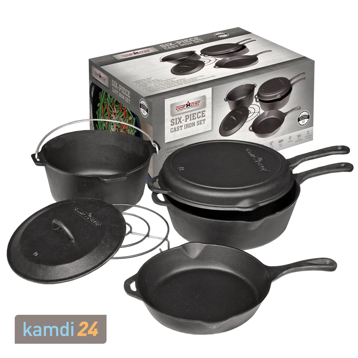 Mit dem von erhalten Sie die perfekte Grundausstattung zum Kochen mit gusseisernem Geschirr. Die optimale Hitzeverteilung und -speicherung von Gusseisen macht dieses Material immer beliebter und dank der Vorbehandlung mit können Sie direkt loslegen – ganz egal, ob in der Küche, während Ihres Campingurlaubs oder im heimischen Garten.