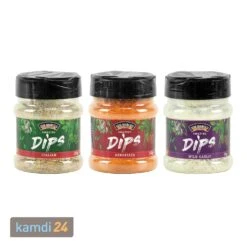 Mit den von bringen Sie auch echte Fleischfans dazu, Gemüse zu essen! Egal ob beim Grillen, zu Feiern oder abends auf der Couch, diese Dips verfeinern Fingerfood und Snacks. Sie passen natürlich nicht nur zu Gemüse, sondern auch zu Brot, Fleisch, Chips, Grissini und vielem mehr! Probieren Sie die leckeren Dips auch auf Sandwiches und Nachos. Oder Sie peppen damit das Joghurtdressing für Ihren Salat auf. Schluss mit den Zeiten, in denen Sie jedes Gewürz für Ihren Dip einzeln hinzugefügt haben. Einfach ein paar Teelöffel der köstlichen in Quark, Frischkäse, Sour Creme, Mayonnaise, Joghurt, Ketchup oder Butter gemischt und ab damit auf den Tisch! Perfekt für BBQ-Einsteiger und jene, die gern weniger Zeit in der Küche und mehr Zeit bei ihren Gästen verbringen wollen!