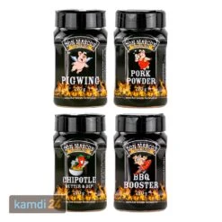 hat einen leckeren Bacon-Geschmack und ist der perfekte für Chicken Wings, andere Geflügel-Spezialitäten, Schweinefleisch und Gemüse. Der würzig-scharfe Rub enthält sehr wenig Zucker und empfiehlt sich vor allem für Schweinebraten und Pulled Pork. Das ist ein Geheimtipp für jeden, der im Handumdrehen einen leckeren Dip oder eine tolle Grillbutter zaubern möchte. ist laut Don Marco´s Barbecue nicht als purer Rub zu empfehlen, sondern als Schärfe-Kick für andere Rubs. Ein hoher Anteil an Chili und Jalapeños machen aus dem Rub eine feurige Angelegenheit.