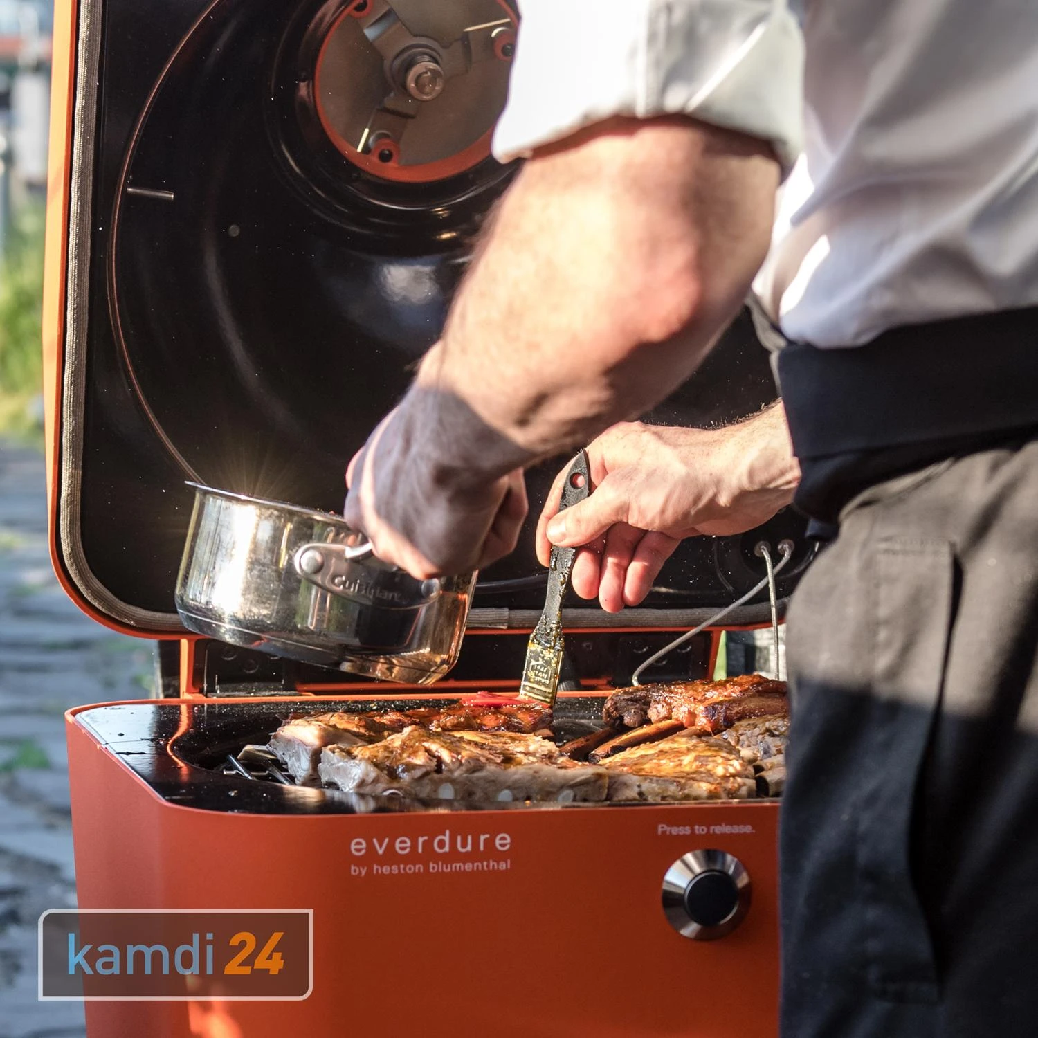 Die Zubereitungsmethoden reichen beim von „low&slow“ bis hin zu „searing“. Egal ob Grillen, Braten, Backen oder Garen – mit seinen zahlreichen Möglichkeiten für bringt der Ihre gesamte Küche in den Garten. Das hitzeisolierte „Cool Touch“-Gehäuse und der automatische Verschlussmechanismus des Deckels sorgen für höchste Sicherheit. Dank dem ist die Holzkohle auf Knopfdruck innerhalb weniger Minuten zum Grillen bereit.