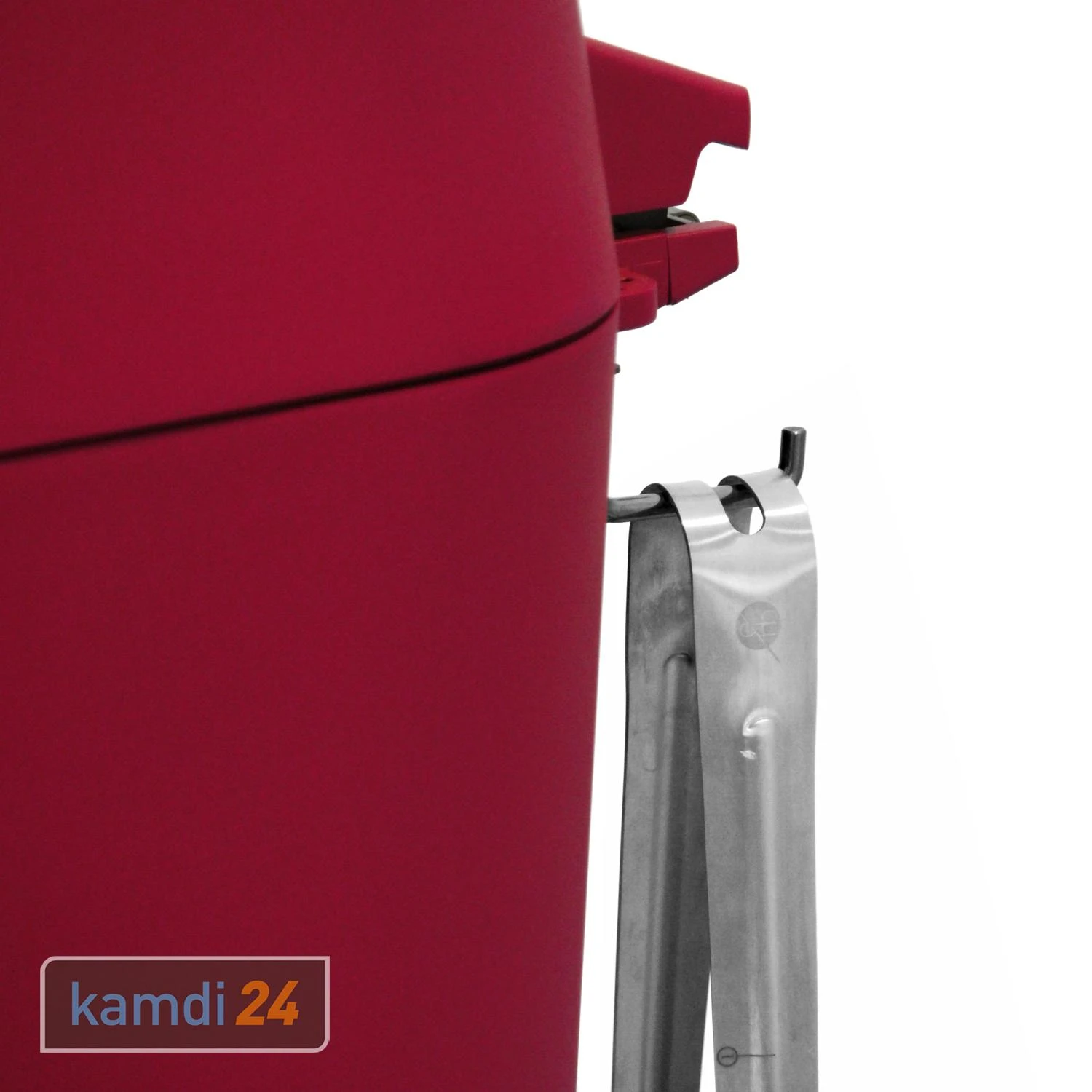 Die Ausstattung des lässt keine Wünsche offen, denn im Lieferumfang ist zahlreiches nützliches Zubehör enthalten: Eine Grillzange, eine Holzkohlezange, eine Thermometer-Befestigung, ein Wasserbehälter zur Regulierung der Luftfeuchtigkeit, ein 33 cm Pizzastein aus Kordierit, zwei Grillroste aus Gusseisen, zwei Grillroste aus Edelstahl, vier Grillthermometer. Zudem besitzt der eine integrierte Beleuchtung und abnehmbare Standfüße.
