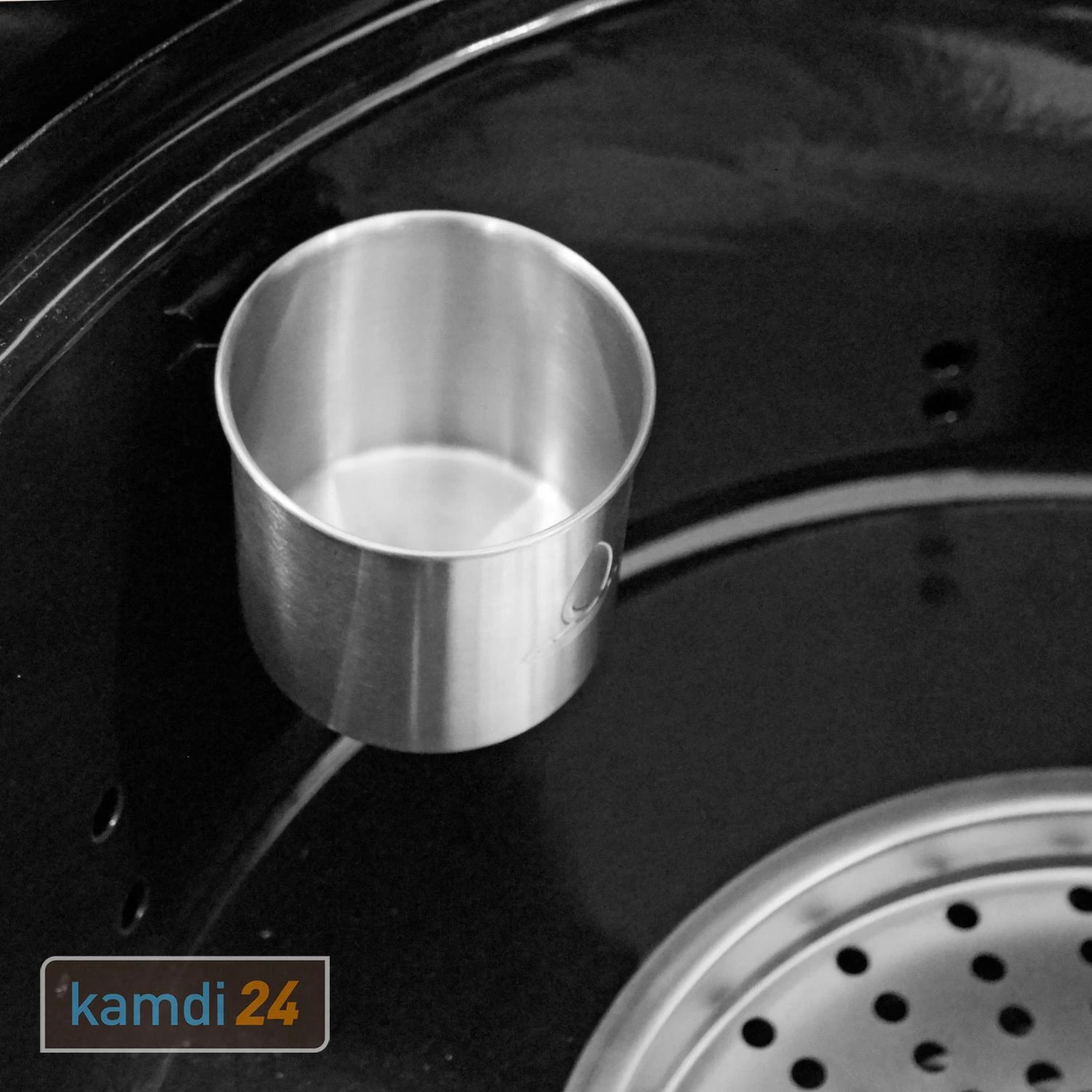 Die seitliche Öffnung mit Drehverschluss ermöglicht Ihnen das Nachfüllen von Kohle oder Räucherchips, ohne die Temperatur im Inneren des Grills zu beeinflussen.
