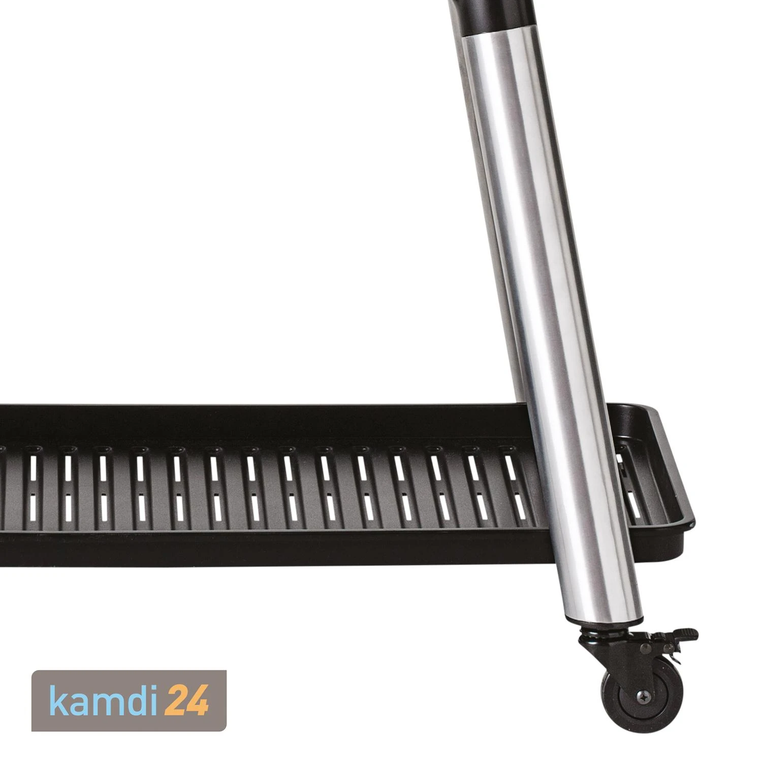 Zwei Rollen mit Feststellbremse sorgen für einen komfortablen Transport des Grills an seinen Platz auf der Terrasse oder im Garten. Doch es ist auch möglich, spontan zu Freunden mitzunehmen: Die Standbeine lassen sich mühelos abmontieren, sodass Sie den 29 kg leichten Grill auch einfach ins Auto legen und über längere Strecken transportieren können.
