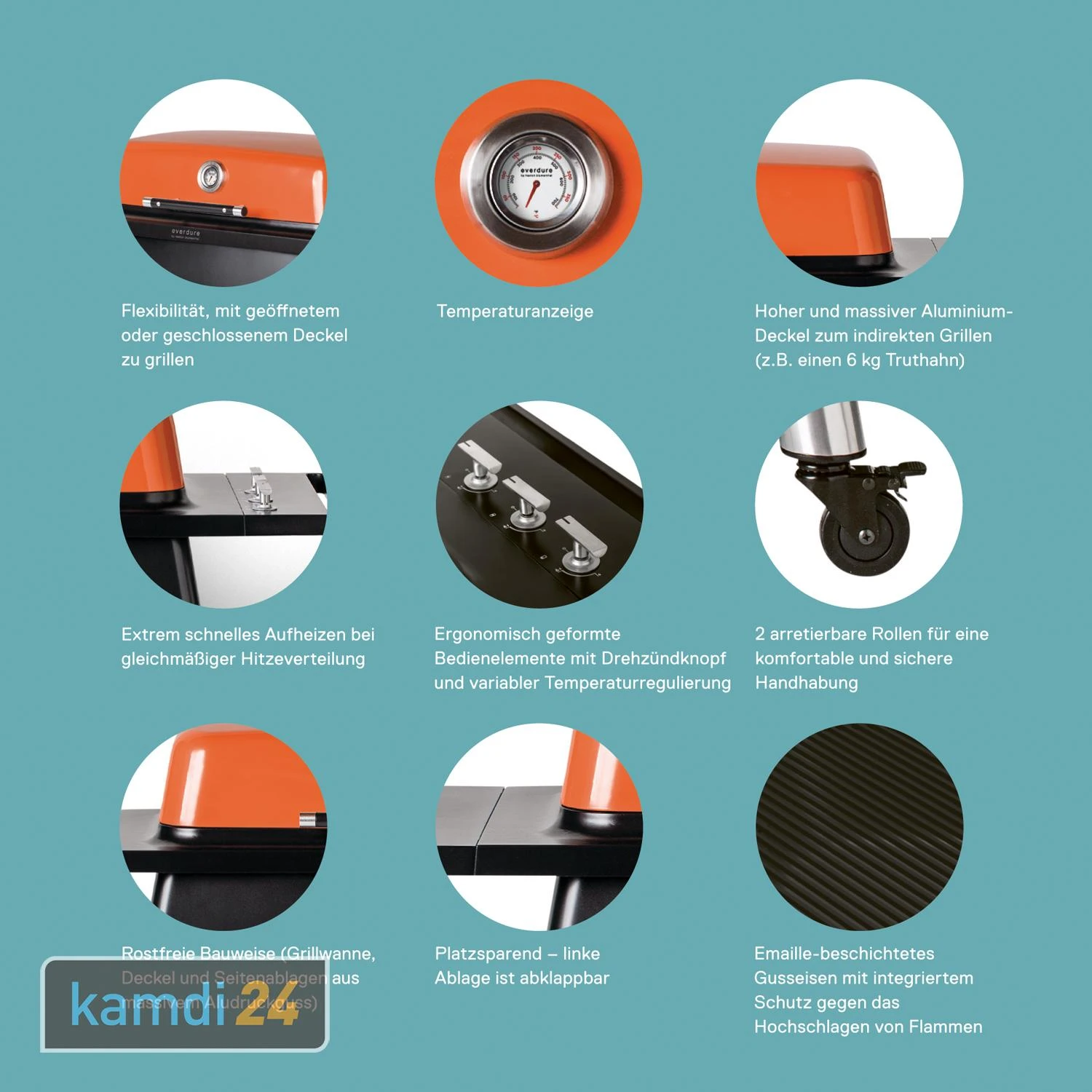 Das nahtlose Design des leistungsstarken Gasgrills erhält durch seinenmassiven Deckel in den Farben , , oder einen spannenden Akzent. Moderne Zweckmäßigkeit und ein Hauch Nostalgie vereinen sich so zu einem Grill, der Ihre Terrasse oder Ihren Garten zu einem noch genussvolleren Ort machen wird.