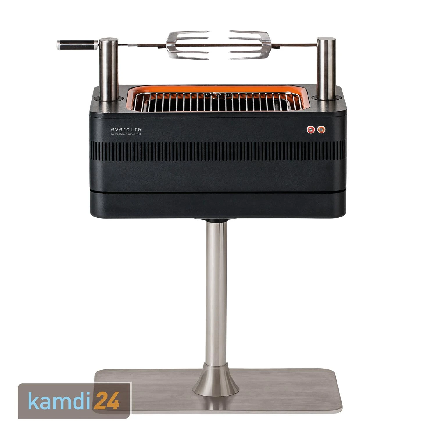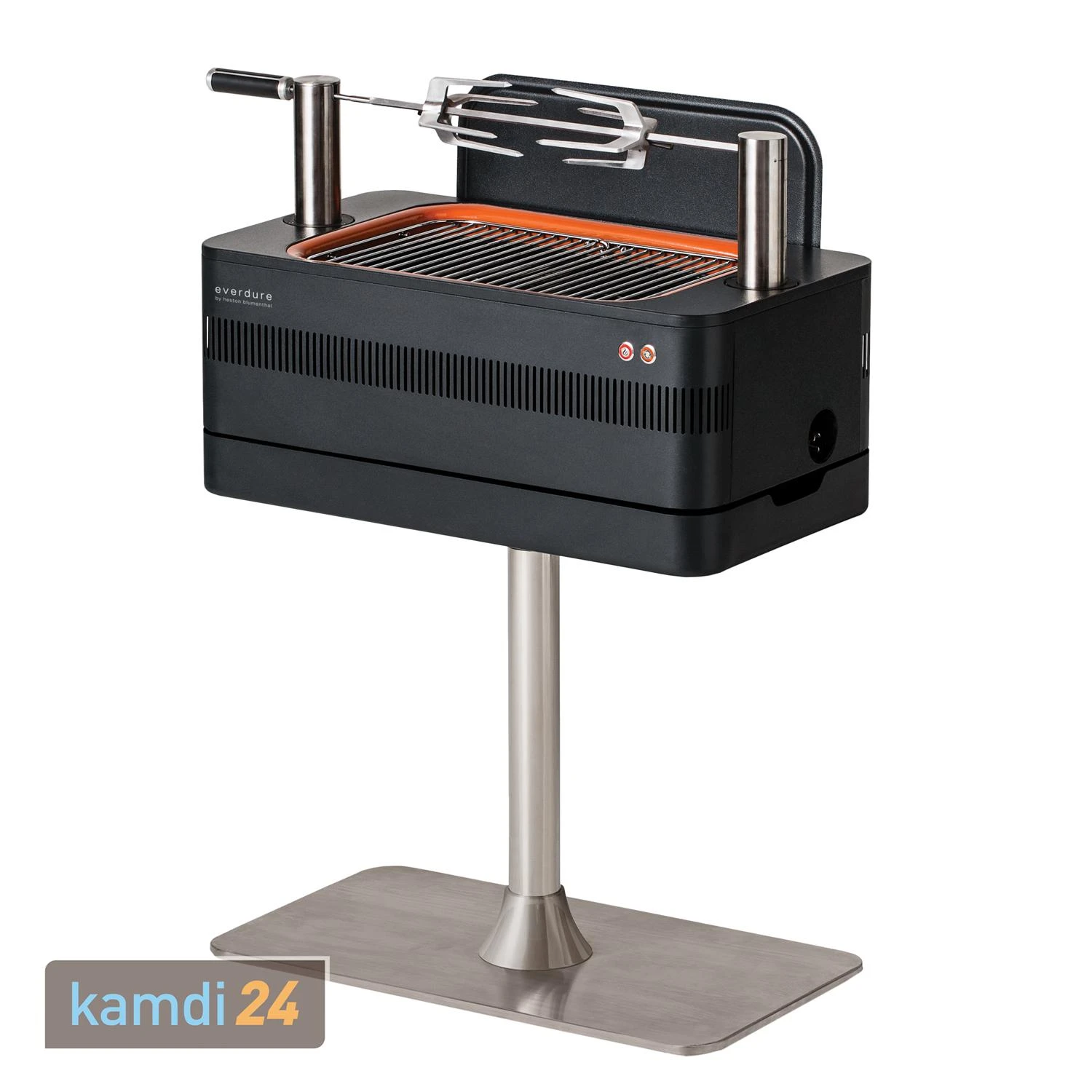 Wenn Sie die Rotisserie gerade nicht brauchen, versenken Sie sie einfach im und legen Fleisch, Fisch, Gemüse oder Käse stattdessen auf den 1.659 cm² großen Grillrost. Dieser ist klappbar, sodass Sie auch während des Grillens bequem Kohle nachlegen können. Um mit dem Grillen zu beginnen, genügt ein Knopfdruck: Das lässt die in nur 9 Minuten grillfertig durchglühen. Die porzellanemaillierte Grillwanne und der herausnehmbare Kohleeinsatz machen überdies die nach dem Grillen zum Kinderspiel.