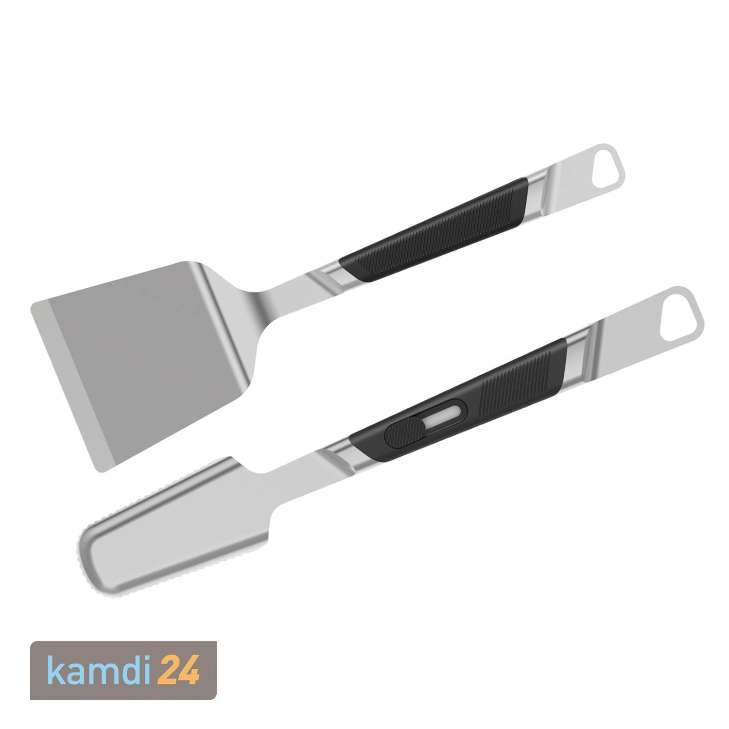 Das Premiumgrillbesteck M umfasst den und die . Beide Grillwerkzeuge beeindrucken mit hochwertiger Verarbeitung und durchdachtem Design. Die gezahnten Greifflächen der Grillzange ermöglichen ein sicheres Bewegen des Grillgutes. Der Grillwender ist vor allem für kleinteiliges oder zerbrechliches Grillgut das perfekte Instrument. Dank der Softgriffe liegt das immer sicher in der Hand. Ein besonderes Gimmick: Die Öse zum Aufhängen der Werkzeuge ist gleichzeitig als Flaschenöffner konzipiert.