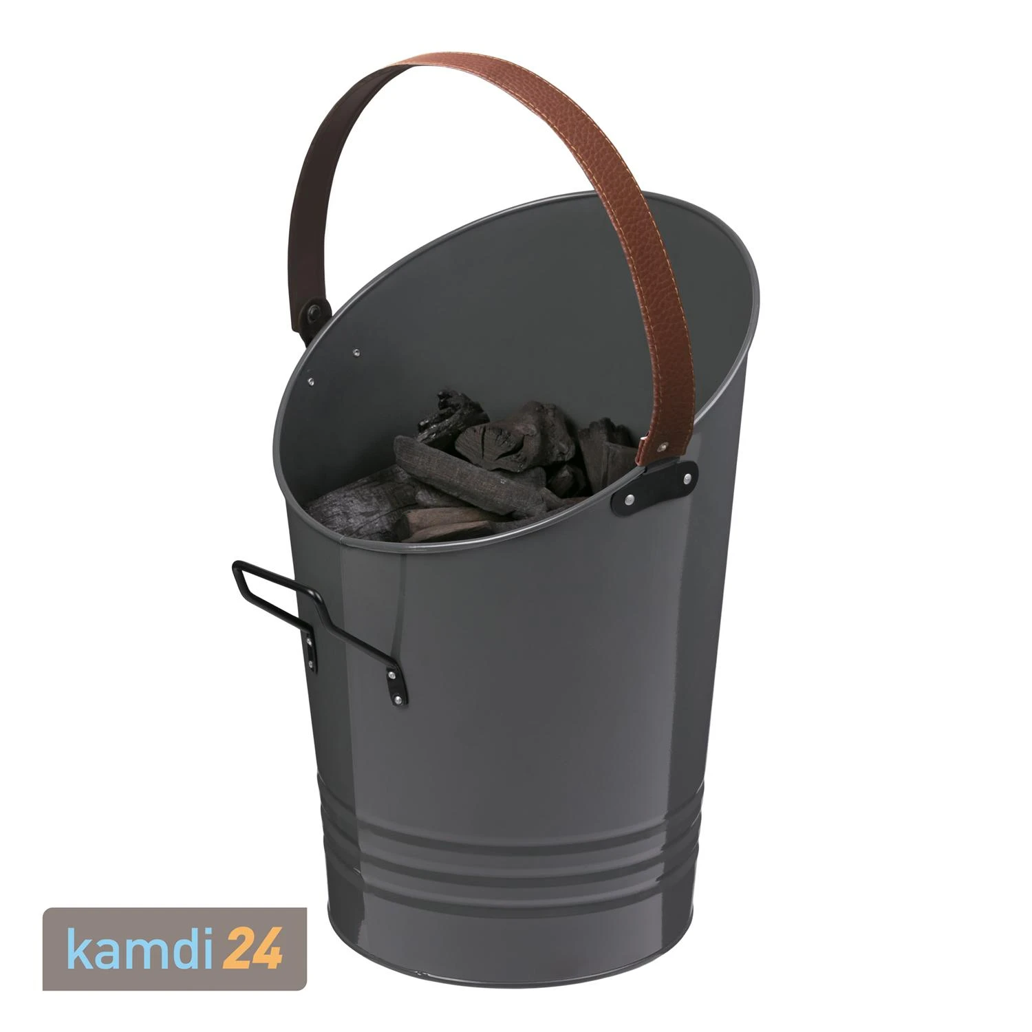 Der Kohleeimer fasst bis zu . Sein ergonomisches Design mit seitlichem Griff erleichtert das Ausschütten der Kohle. An seinem braunen PU-Lederriemen lässt sich der komfortabel transportieren. Hinweis: Der Kohleeimer ist nur zum Transport von kalter Grillkohle konzipiert. Zur Aufbewahrung von noch heißer Kohle und Asche nach dem Grillen empfehlen wir Ihnen den Kohlebehälter mit Deckel.