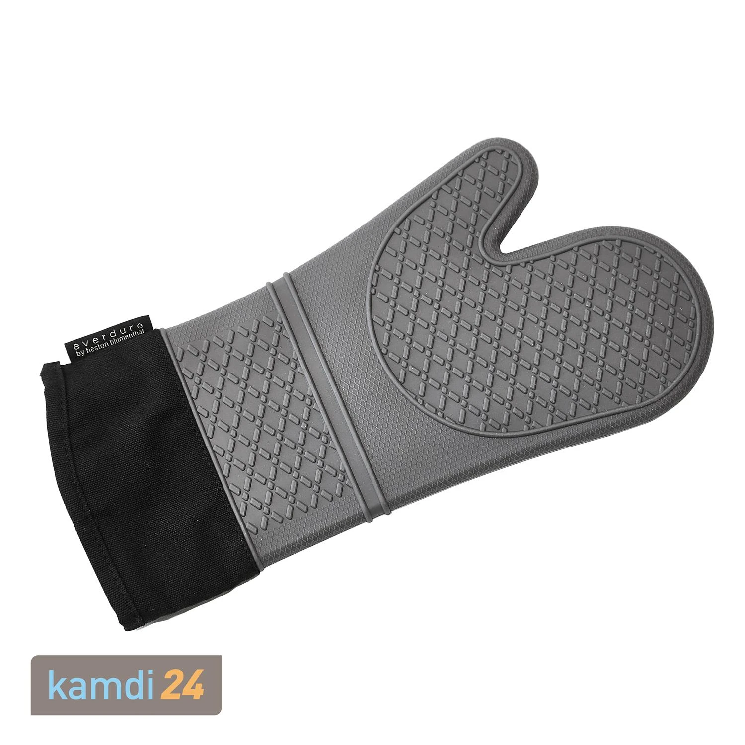 Der hochwertige von ist hitzebeständig bis 230 °C und kann sowohl mit der rechten als auch mit der linken Hand verwendet werden. Futter und Bündchen aus Baumwolle sorgen für einen angenehmen Tragekomfort. Mit dem Silikonhandschuh können Sie am Grill Arbeiten erledigen, die herkömmliche Grillhandschuhe dauerhaft nicht leisten können, beispielsweise heißes bewegen, Gussroste umlagern oder Kohlen neu arrangieren. Ein aus Silikon ist somit die perfekte Ergänzung zu einem Paar .