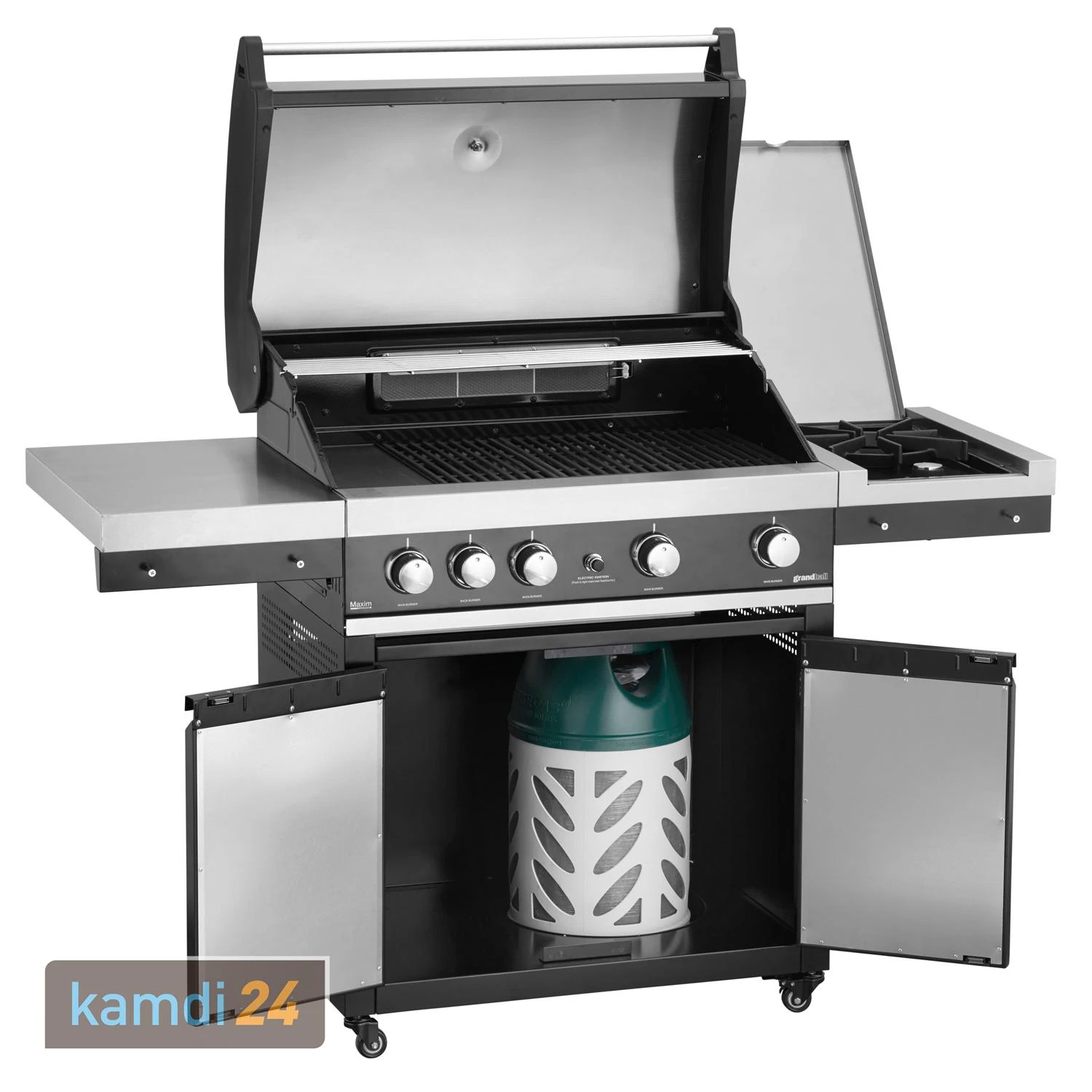 Der von ist die perfekte Wahl für all jene, die gern regelmäßig in geselliger Runde grillen und dabei nicht auf den nötigen Grillkomfort verzichten möchten. Insgesamt mit je 4,3 kW Leistung heizen dem Grillgut auf der 80 x 44,8 cm großen Grillfläche ordentlich ein. Die Gussroste sorgen dabei für das grilltypische Branding und garantieren eine gleichmäßige Wärmeverteilung. Über das behalten Sie die Temperatur im Inneren des stets im Blick. Und während Ihr Grillgut auf dem Rost brutzelt, bereiten Sie zeitgleich auf der rechten passende Beilagen oder Soßen und Suppen zu. Der ist zudem mit einem Infrarot-Heckbrenner ausgestattet, der Ihnen die Zubereitung von Grillgut am optional erhältlichen ermöglicht. Die linke Seitenfläche sowie der geräumige Unterschrank dienen als Ablagefläche und bieten Platz zum Verstauen von sowie der Gasflasche.