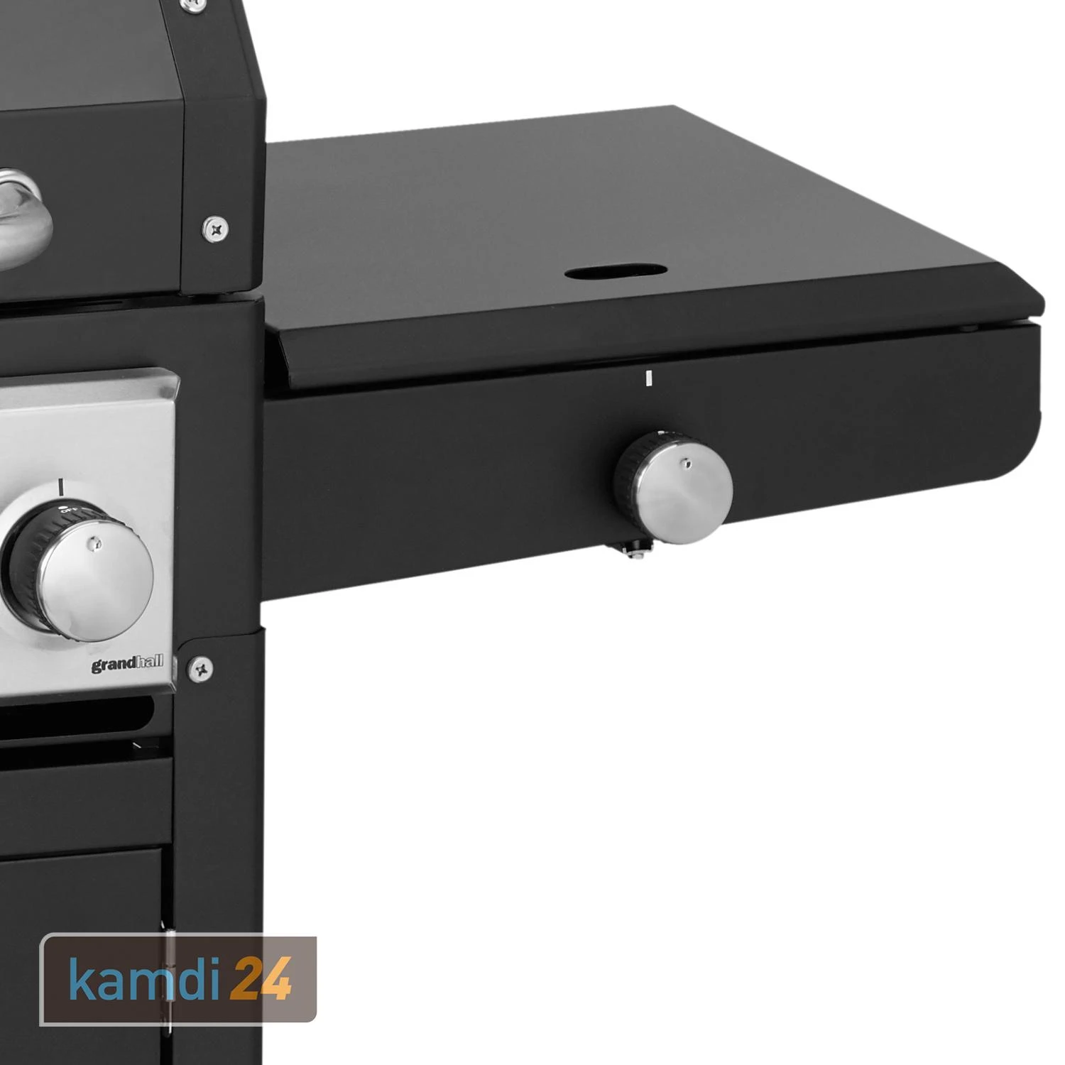 Nutzen Sie den integrierten Seitenbrenner mit einer Leistung von 4,4 kW zur Zubereitung von Soßen oder Beilagen. Im geschlossenen Zustand dient der Seitenbrenner als praktischer Ablagetisch.
