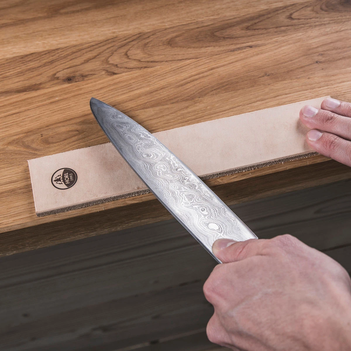 Das Original HORL Abziehleder ist aus echtem, hochwertigen Rindsleder gefertigt und sorgt für ein Profi-Finish, nachdem Ihr Eure Messer geschliffen habt. Die feinporige Oberfläche des Abziehleders entfernt selbst die feinsten Schleifreste von der Schneide. Das Leder hat die Maße 25 cm x 5 cm.