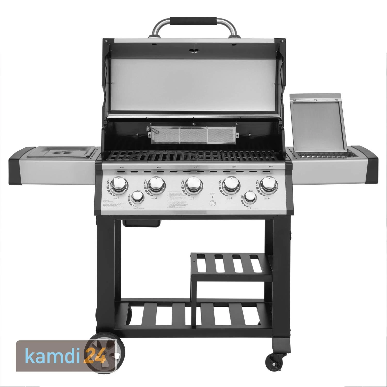 Im linken Seitentisch von ist eine Edelstahlschale mit Abdeckung untergebracht. Darin lässt sich beispielsweise Eis zum Kühlen von Lebensmitteln und Getränken lagern. Der bietet zudem genügend Stauraum für , Geschirr und Gewürze. Vier stabile Rollen ermöglichen den einfachen Transport des Gasgrills. Wir empfehlen Ihnen den Kauf einer passenden , um Ihren neuen Grill bei Nichtgebrauch vor Witterungseinflüssen und Staub zu schützen.