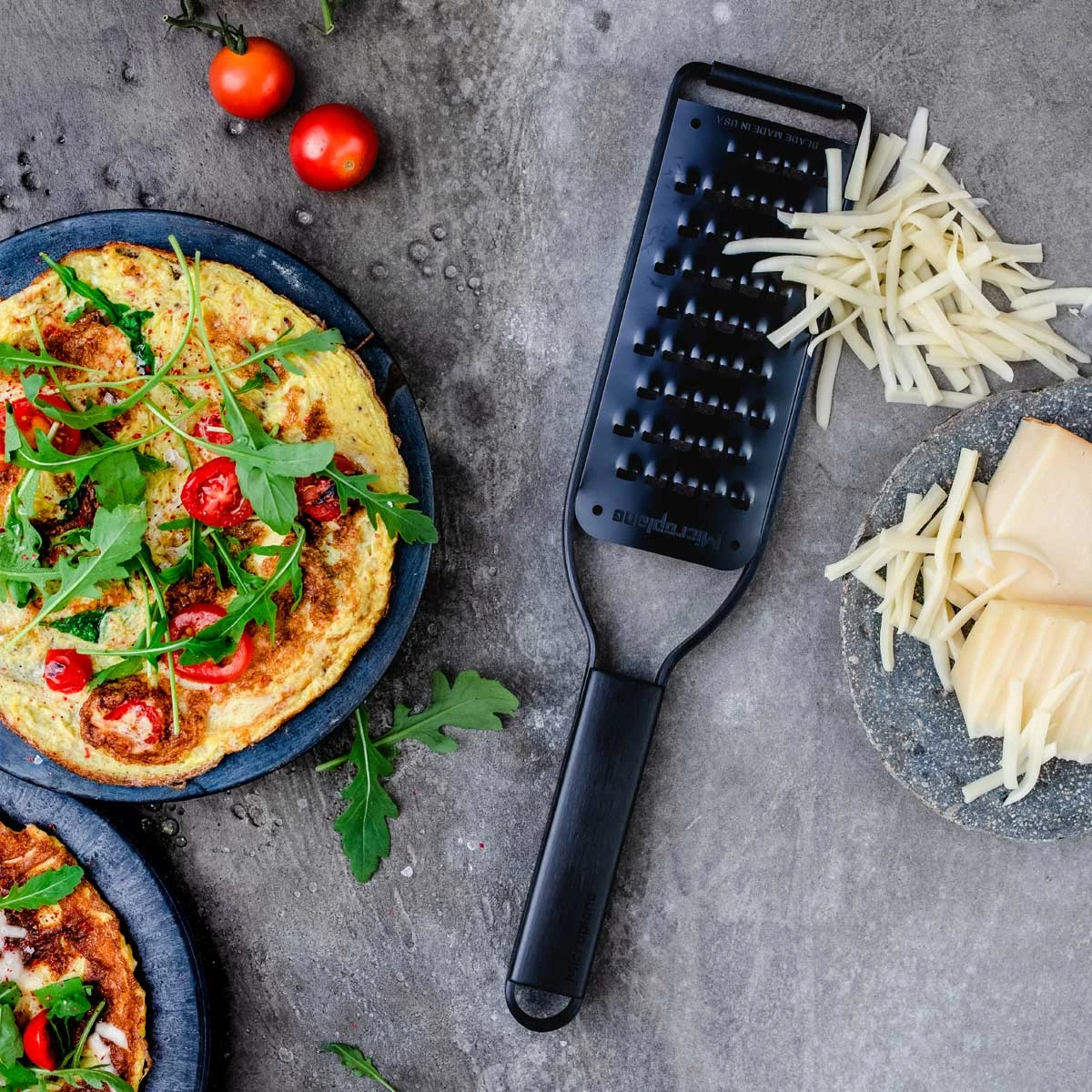Wer neben höchster Funktionalität auch Wert auf legt, wird an der Microplane Black Sheep Serie seine wahre Freude haben. Vom Griff über den Rahmen bis zur Klinge in schwarze Optik gehüllt, bestechen die Black Sheep Reiben mit ihrem Aussehen. Eine funktionelle sorgt für zusätzliche Kratzfestigkeit.