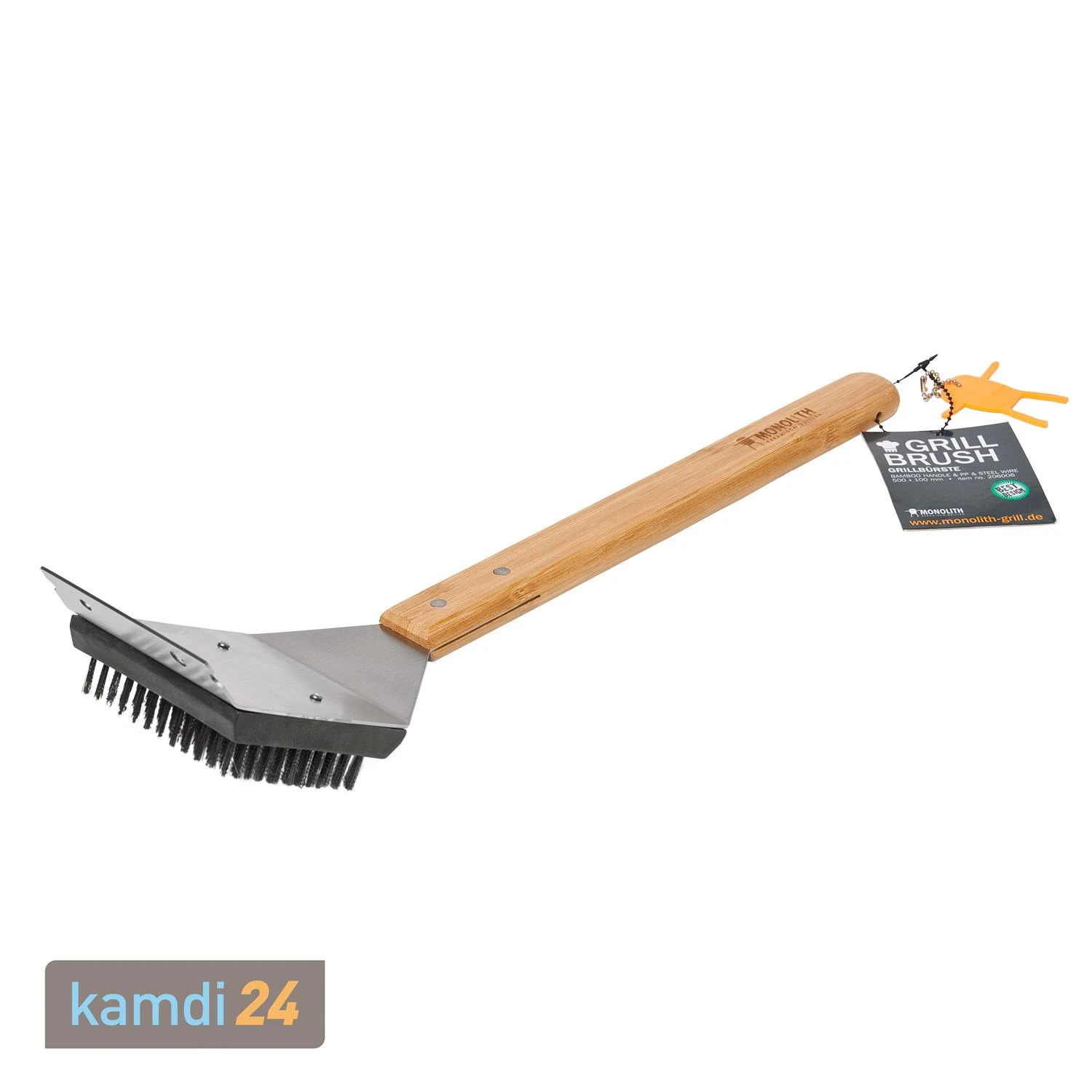 Die von aus rostfreiem, gebürstetem Edelstahl mit langem Bambusgriff eignet sich zur Reinigung des noch heißen Grillrosts. Selbst hartnäckige Verkrustungen können Sie mit dem integrierten Schaber leicht entfernen. Die Bürste ist ideal für das Reinigen von Edelstahlrosten.