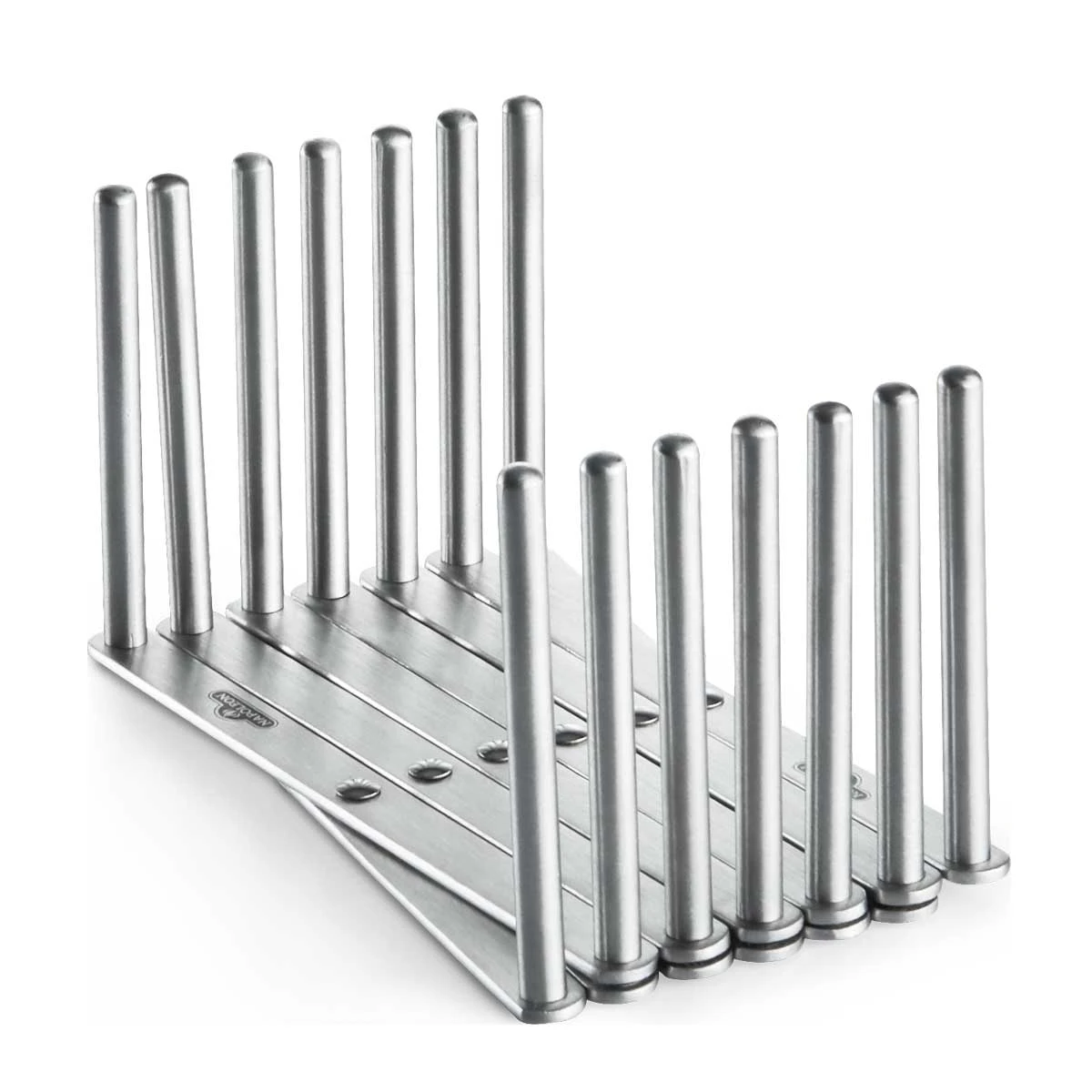 Der Spare-Rib-Halter aus hochwertigem Edelstahl ist pflegeleicht und und lässt sich ganz komfortabel in der Spülmaschine reinigen. Bei Nichtgebrauch könnt Ihr ihn zusammenklappen und kompakt verstauen.