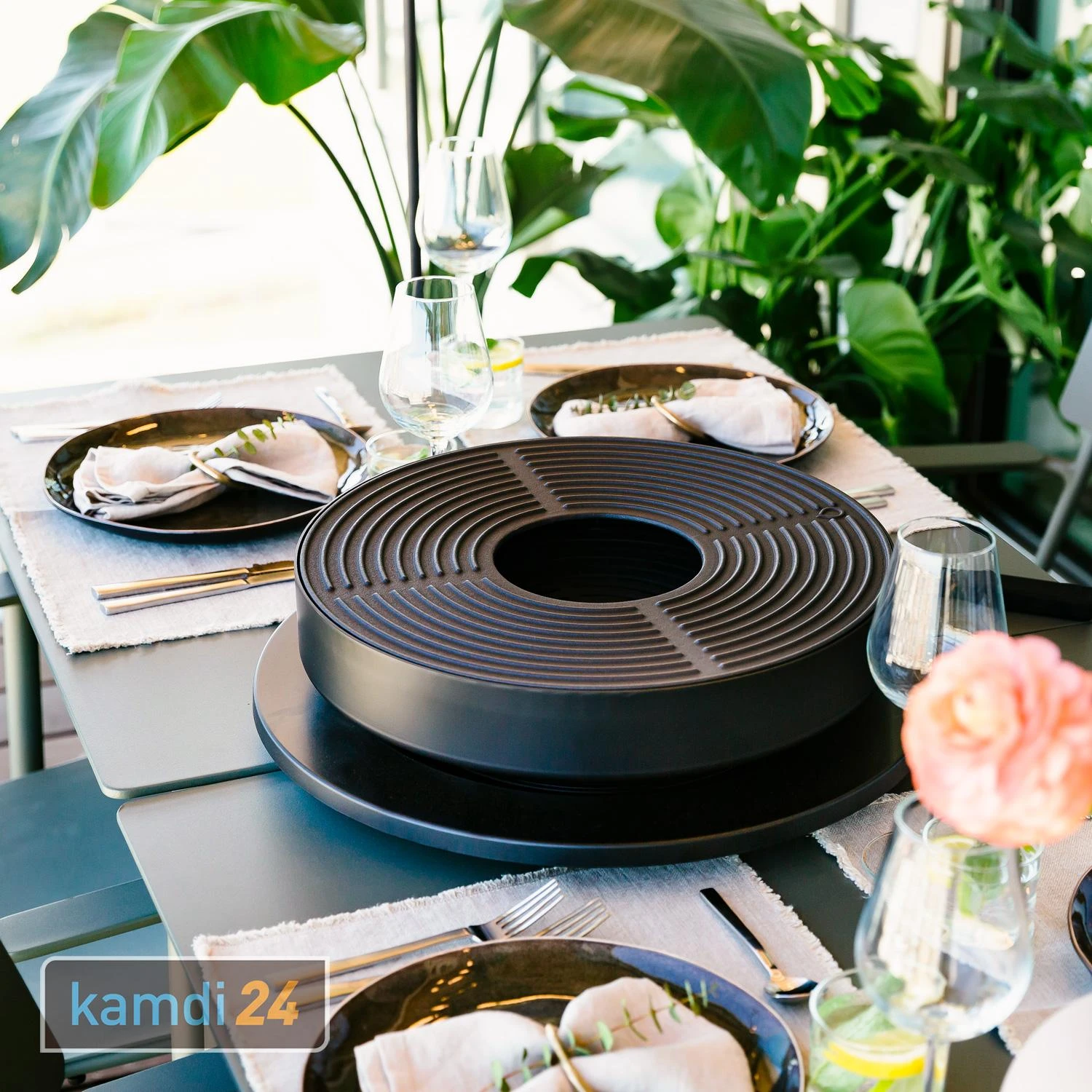 Der stylische, stahlschwarze von ruft ein neues Feeling des Outdoorgrillens auf dem Balkon, der Terrasse und im Garten hervor. Durch seine runde und kompakte Bauweise passt er auf kleine und große Tische, damit alle beisammen grillen und essen können. Ideal für eine Grillrunde von . Mit 40 cm Durchmesser ist auf der genügend Platz und besonders raffiniert: Es gibt eine Seite, sodass Sie je nach Grillgut die passende Oberfläche wählen können. Bereiten Sie Fleisch, Fisch oder Gemüse fettarm, aber mit leckerem Aroma und perfekter Konsistenz zu. Dazu tragen auch die bei, die statt Holzkohle ausschließlich für den Tischgrill verwendet werden sollen. Sie zeichnen sich durch geringe Geruchs- und Rauchbildung aus – in unserem Shop finden Sie die passenden .