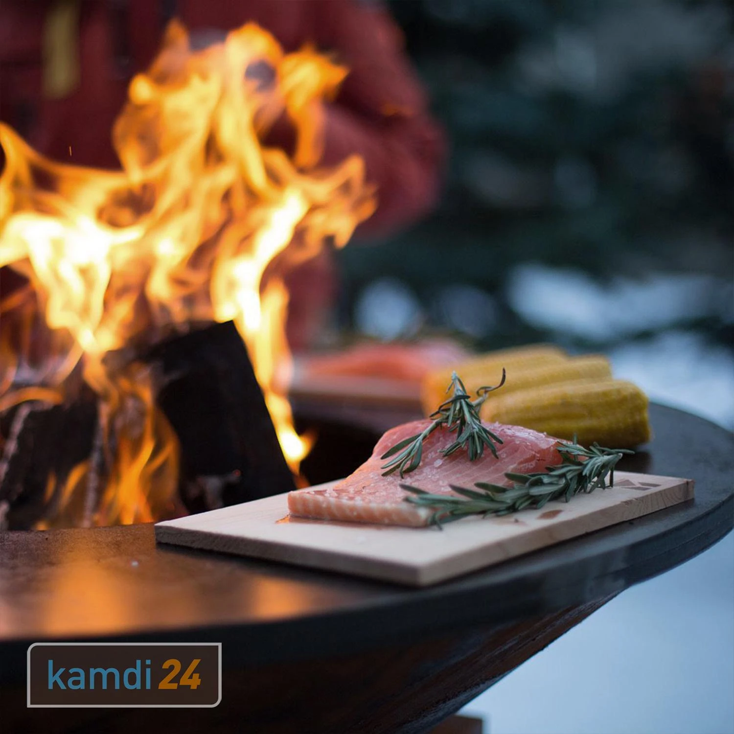 Weiterhin eignen sich die Räucherbretter auf der Kochplatte sowie . Achte darauf, die Bretter nicht direkt auf den Grill oder an das Feuer zu legen, sondern ausschließlich auf die OFYR-Kochplatte.