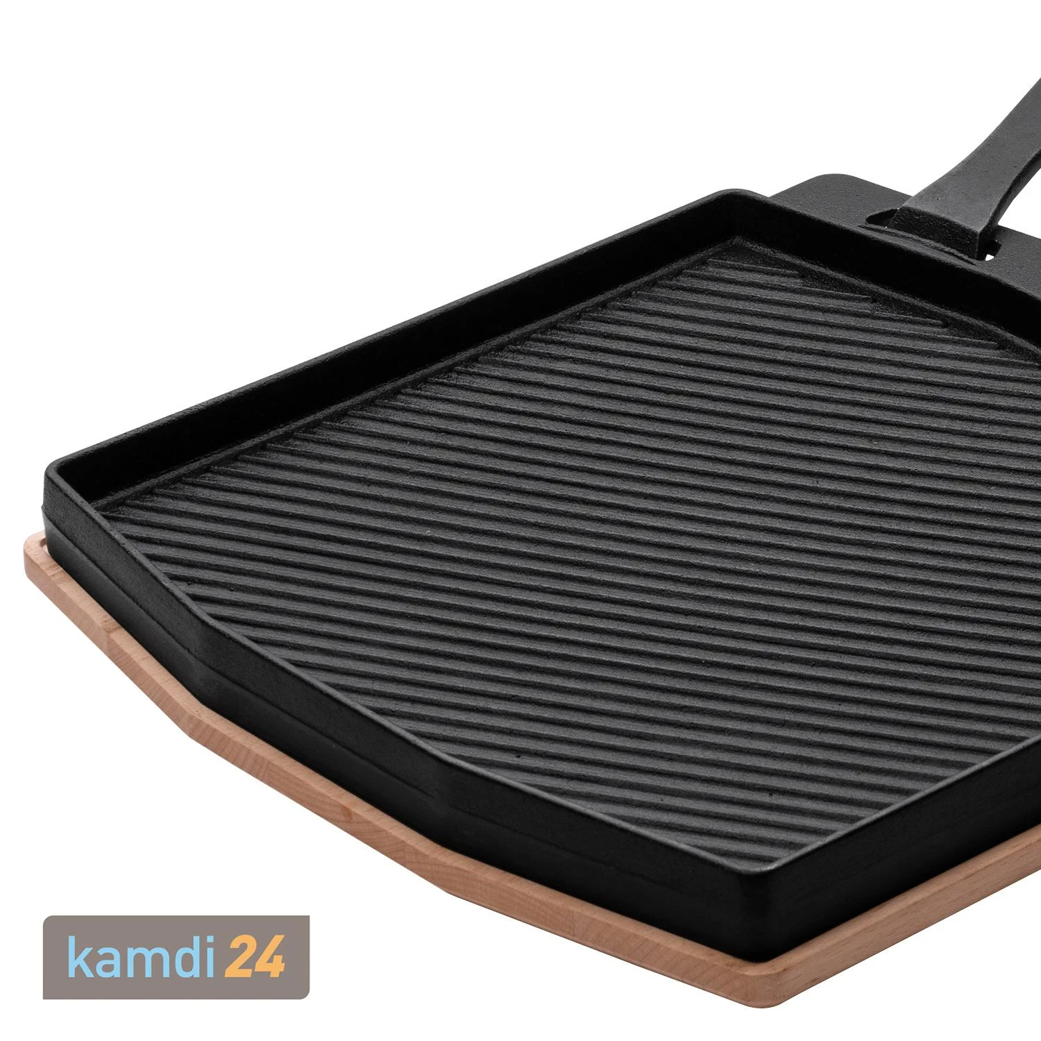 Mit der von aus unserem erhalten Sie einen wahren Allrounder. Die der Pfanne können Sie zum Zubereiten von Spiegelei, Gemüse oder Meeresfrüchten nutzen. Einmal umgedreht zaubert die Pfanne mit ein perfektes Branding auf Ihr Fleisch. Besonders praktisch sind die . Mit diesen können Sie die im Ofen platzieren und ohne Angst vor Verbrennungen wieder entnehmen. Zum Abstellen und Servieren der Pfanne dient der .