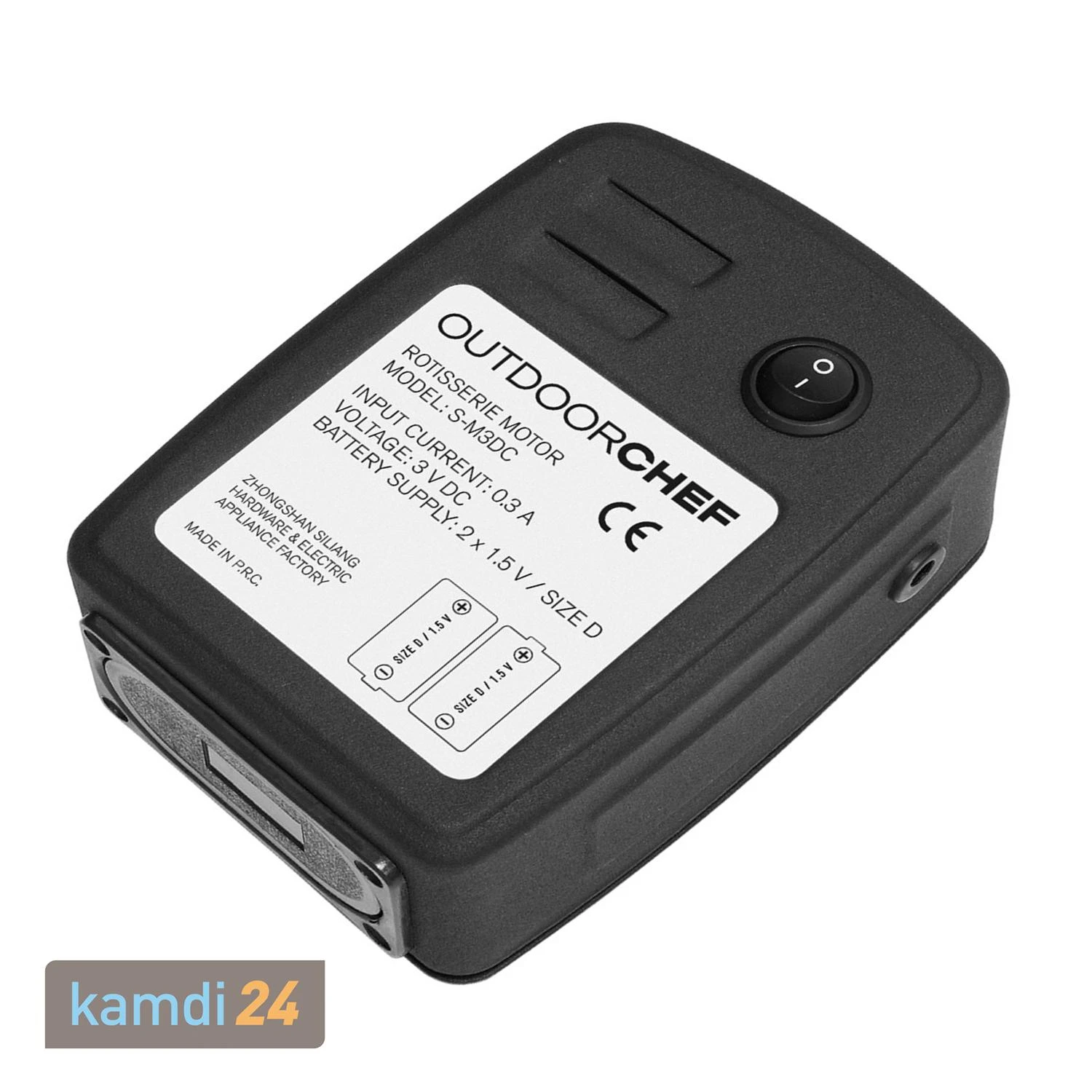 Der Motor hält das Grillgut, wie bei einem Drehspieß, dauerhaft in Bewegung und sorgt somit für eine gleichmäßige Bräunung und Garung. Betrieben wird der Motor mit Batterien oder einem Netzstromadapter. Beides ist im Lieferumfang enthalten.