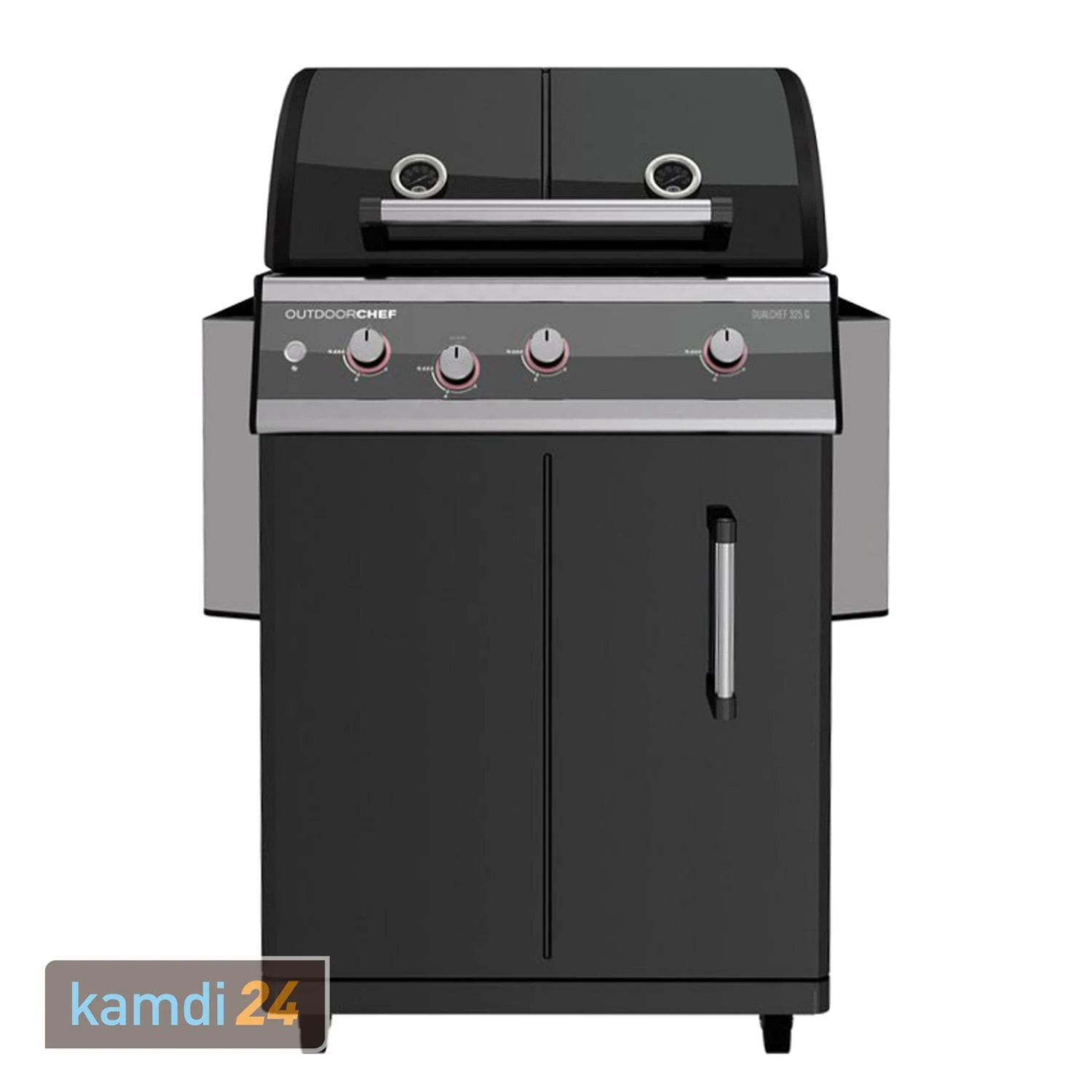 Die Seitenablagen aus Edelstahl bieten genügend Arbeitsfläche zum Vorbereiten von Speisen und dank der eingefassten Besteckhalterung auch genug Platz für das . Nach dem Grillen können sie einfach eingeklappt werden und ermöglichen eine platzsparende Unterbringung des Grills. Im Gegensatz zum Dualchef 315 G verfügt dieses Modell über eine .