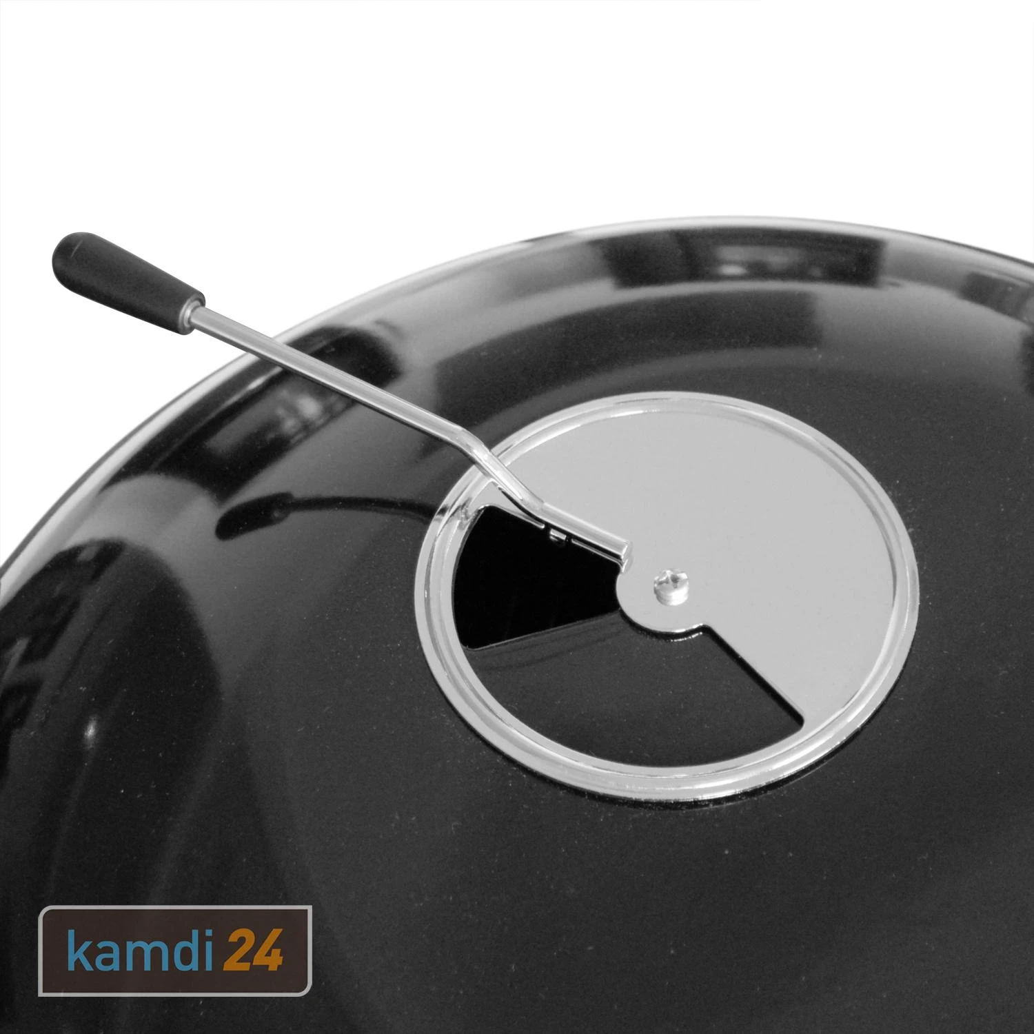 Der punktet zudem durch seine stabile Verarbeitung. Kugel, Rost und Trichter sind porzellanemailliert und lassen sich daher leicht reinigen. Die Bodenplatte bietet ausreichend Platz für . Die beiden Laufräder und der praktische Bügelgriff ermöglichen ein einfaches Bewegen des und heben auf eine angenehme . Der verschiebbare Besteckhalter bietet eine gute Möglichkeit zur Aufbewahrung von während des Grillens.
