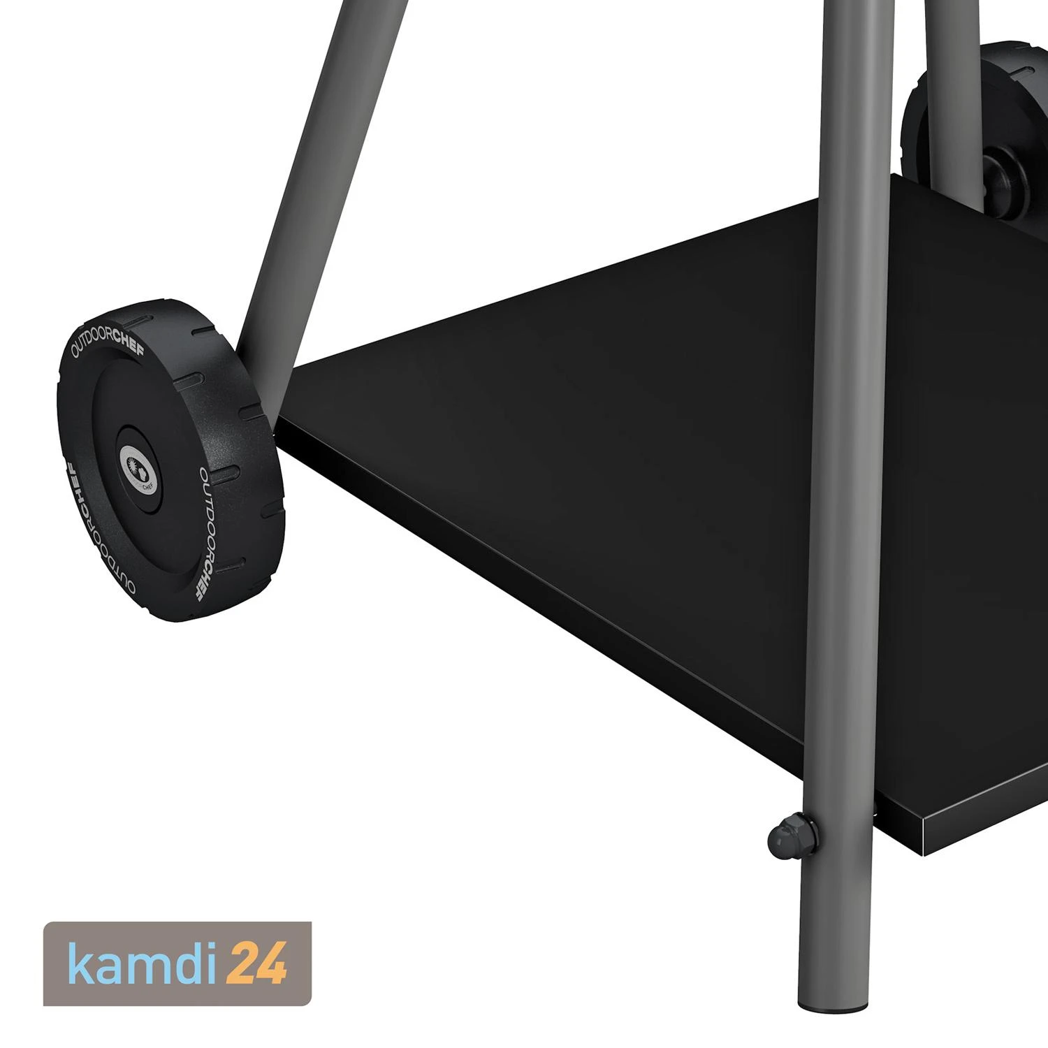 Zwei stabile Laufräder aus Kunststoff machen diesen mobil. Über den Bügelgriff schieben Sie ganz einfach dorthin, wo Sie Grillen möchten.