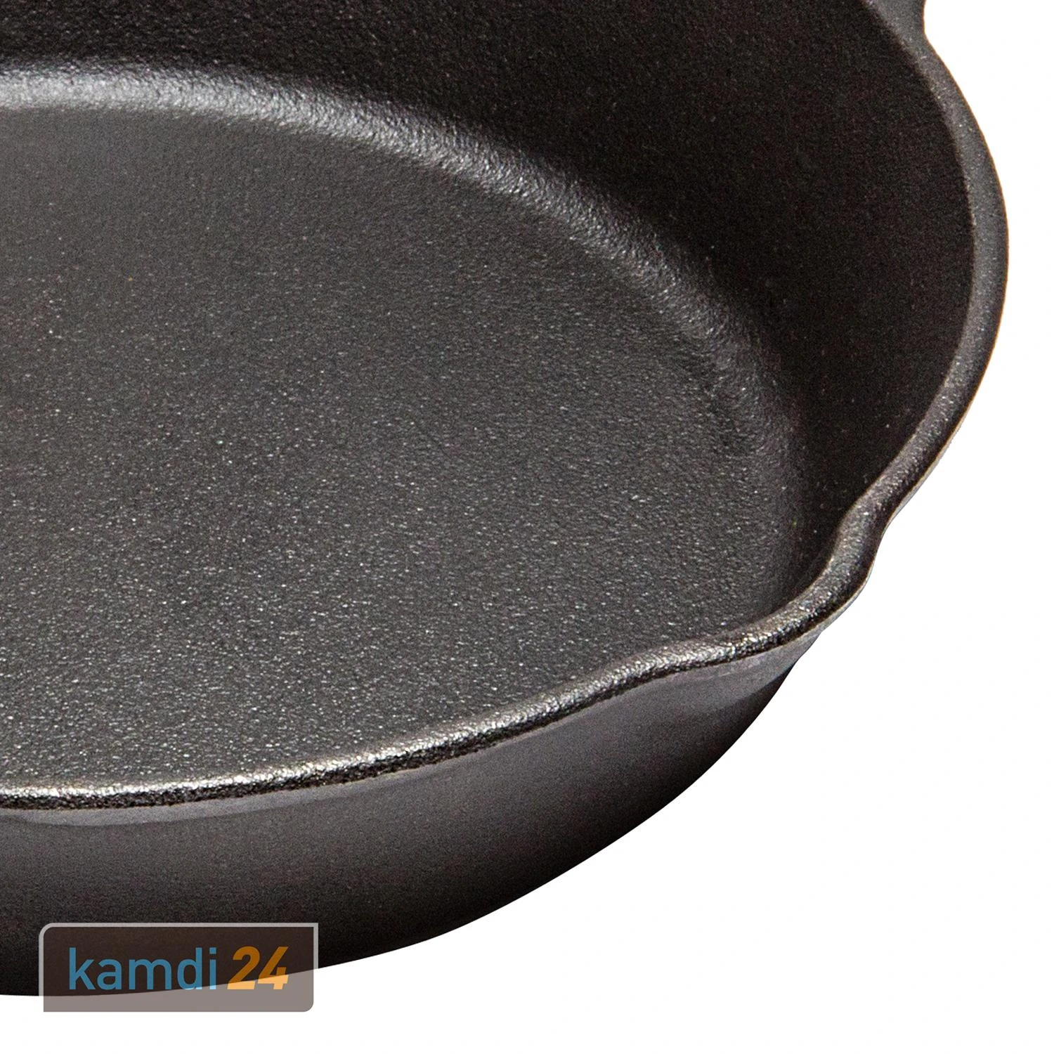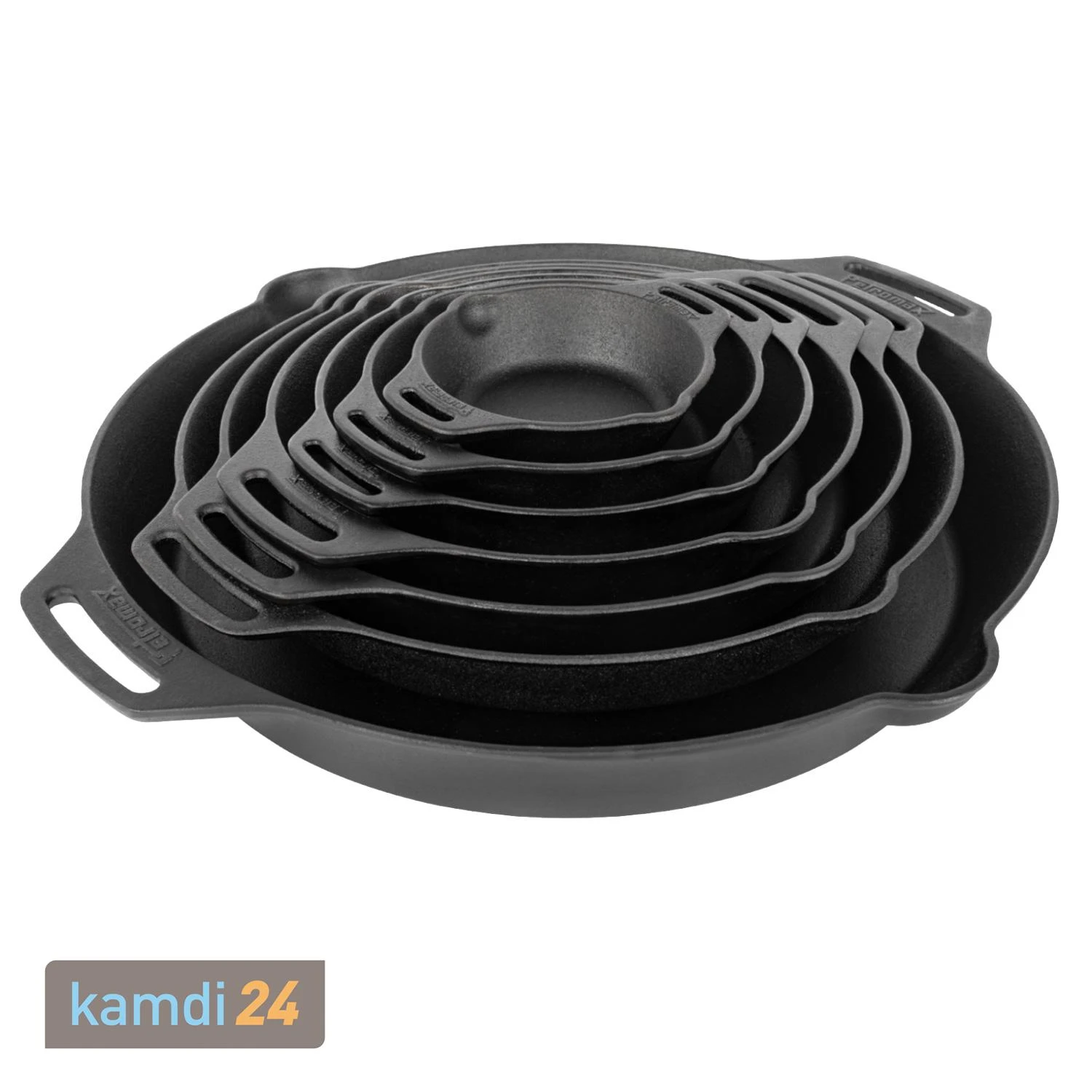 Die Gusspfanne mit Henkel gibt es in unterschiedlichen Größen von . Über das können Sie das Modell auswählen, dessen Fassungsvermögen am besten zu Ihnen passt.
