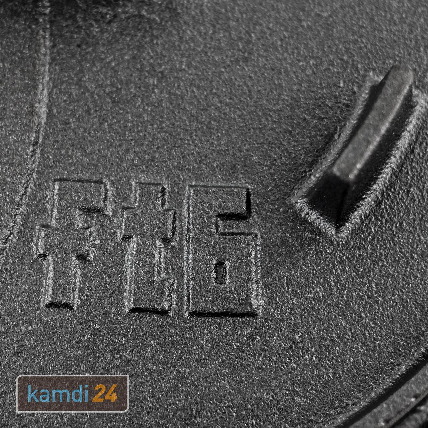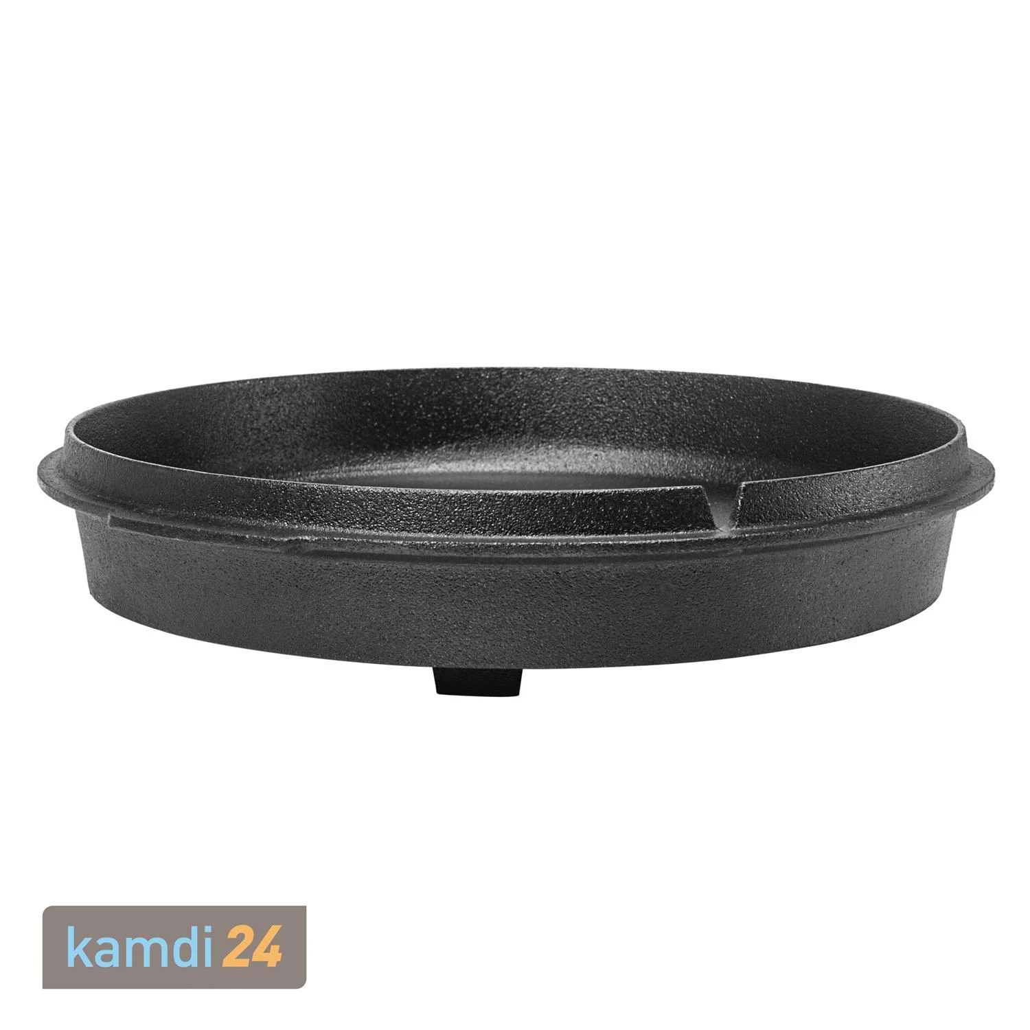 Auf dem Deckel von befinden sich drei gusseiserne Füße, die einerseits das Stapeln der Feuertöpfe ermöglichen und andererseits den Deckel zur Grill- und Servierplatte machen.