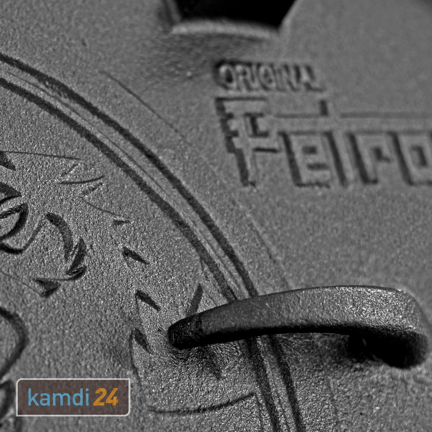 hat einen planen Boden ohne Füße, sodass Sie den massiven Topf sogar auf Ihrem Herd in der heimischen Küche nutzen können. Dank einer speziellen Vorbehandlung („seasoned finish“) ist der Feuertopf sofort einsatzbereit.