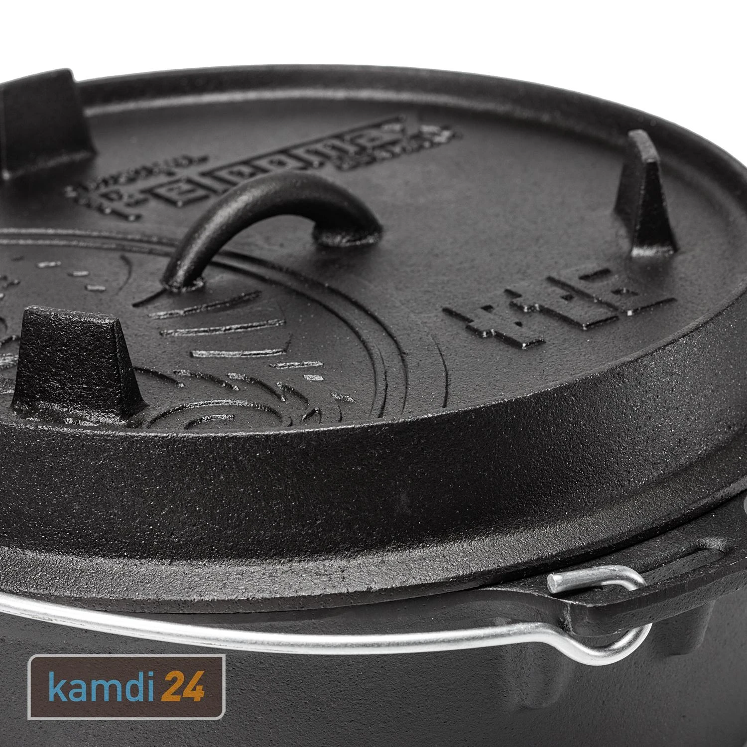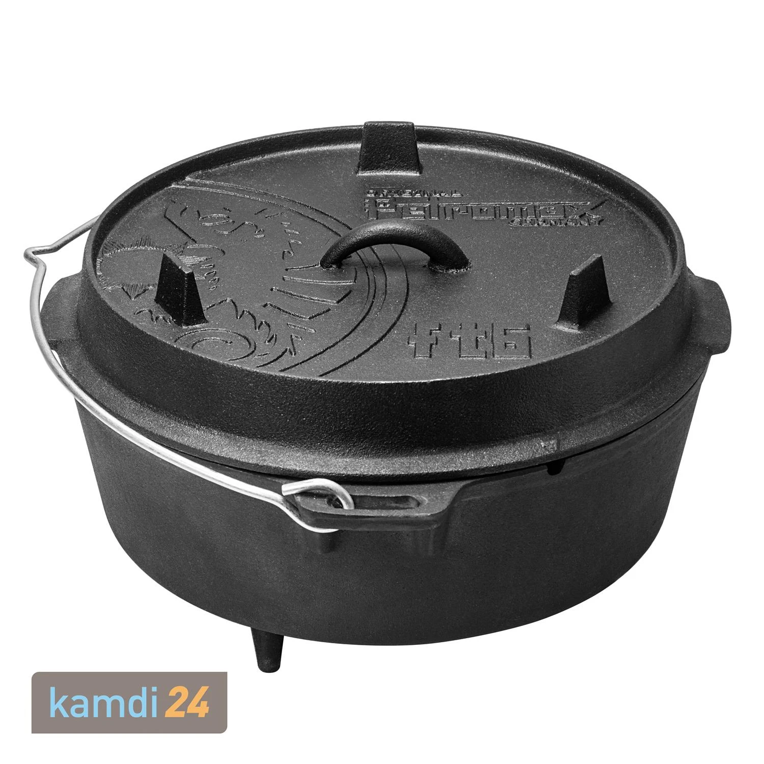 Ein eignet sich nicht nur zur Zubereitung von Suppen oder Eintöpfen – Sie können darin nahezu alle denkbaren Gerichte kochen, braten, backen oder grillen. Der dicht schließende Deckel ermöglicht einen Backofen- und Schnellkochtopf-Effekt, wenn Sie darauf glühende Kohlen platzieren. Die gleichmäßige Wärmeverteilung in den massiven Gusseisen-Wänden sorgt für kurze Garzeiten.