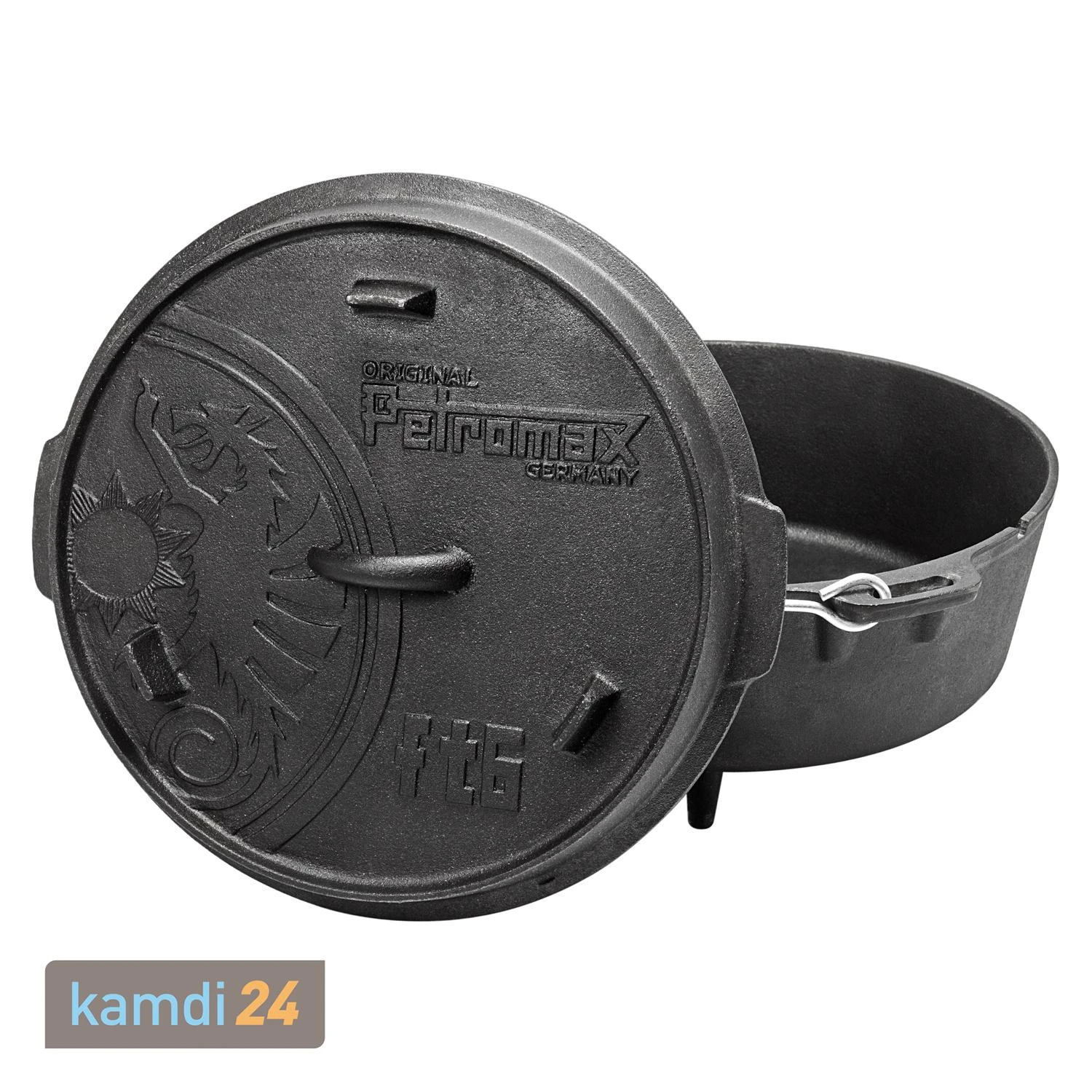 Der von Petromax ist zum Kochen von Speisen für geeignet. Neben der Zubereitung von typischen Dutch-Oven-Gerichten wie Schichtfleisch, Gulasch oder Braten können Sie im auch Brot und Kuchen backen. Der Deckel eignet sich zudem als , beispielsweise für die Feuerstelle .