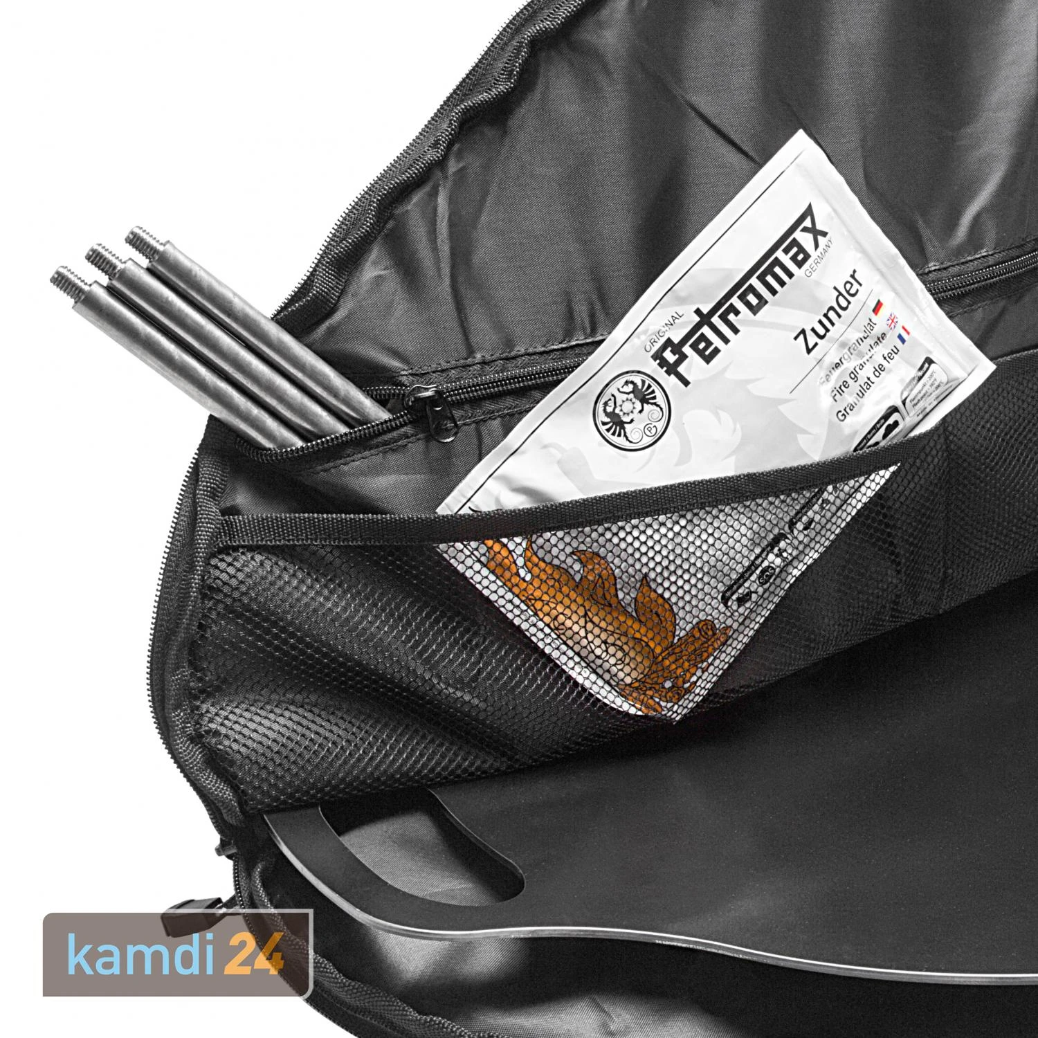 In der hochwertigen von können Sie die komfortabel transportieren und aufbewahren. Im Deckel der nimmt ein Reißverschlussfach die abschraubbaren Füße der Feuerschale auf. Zudem bieten zwei Netzeinschubtaschen , beispielsweise für und .