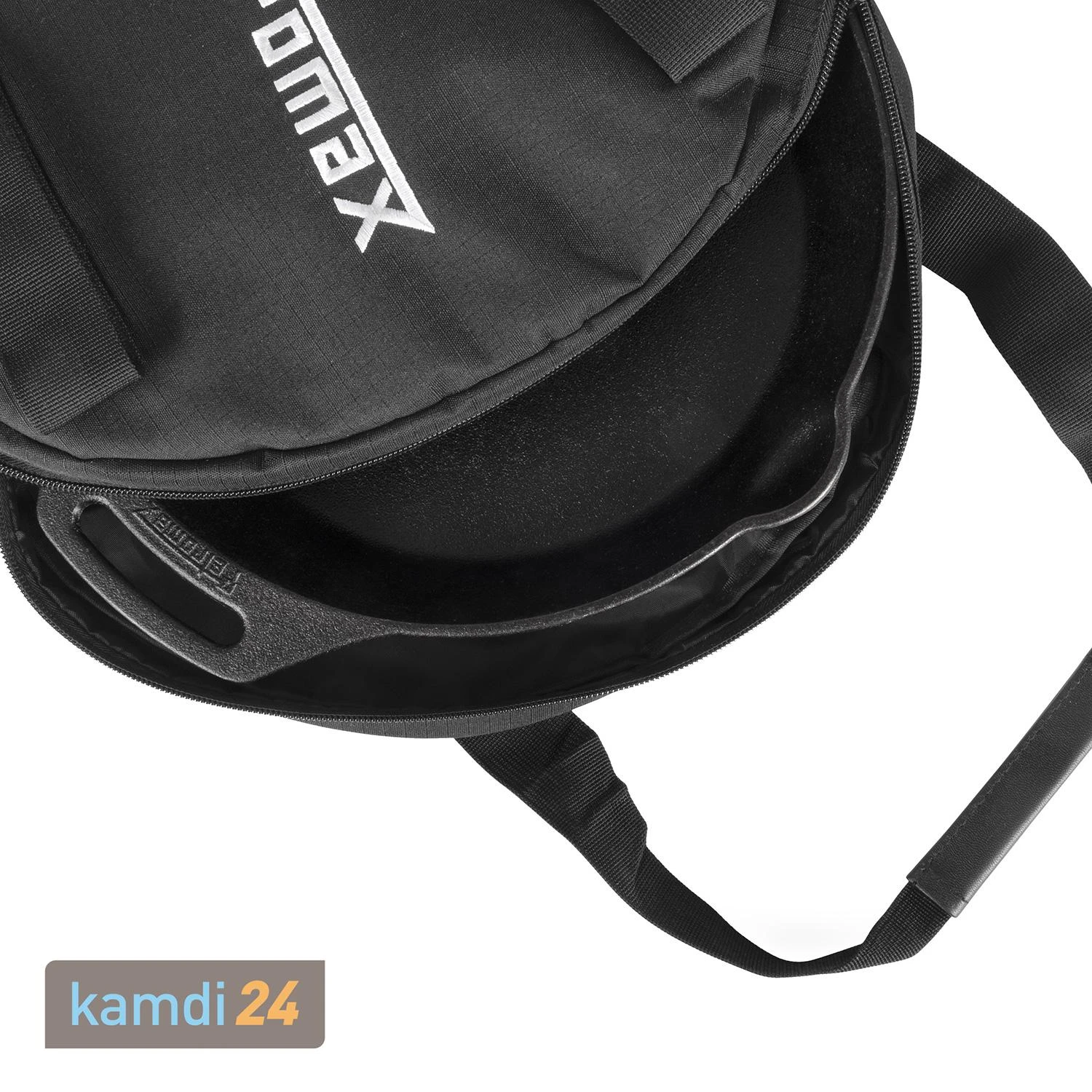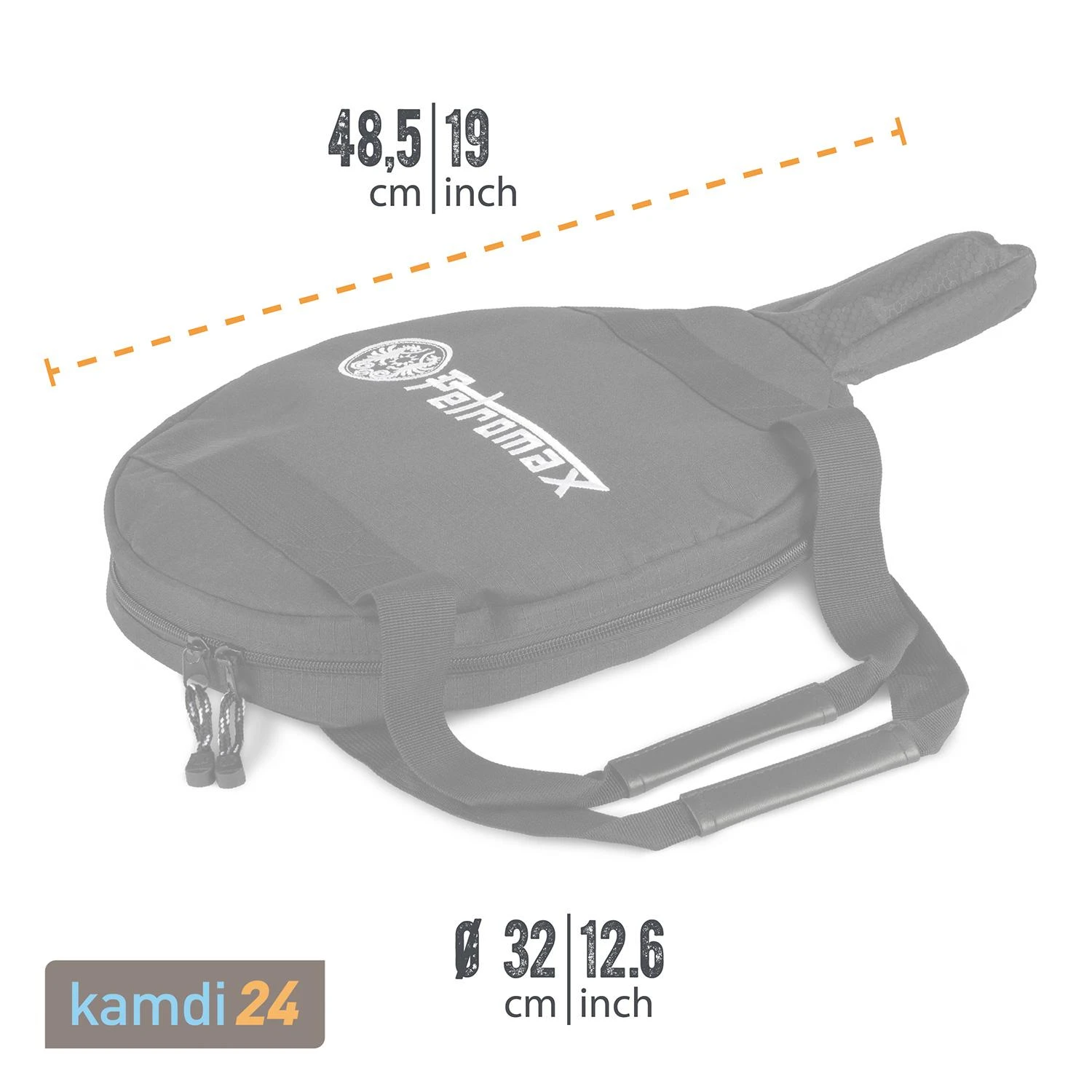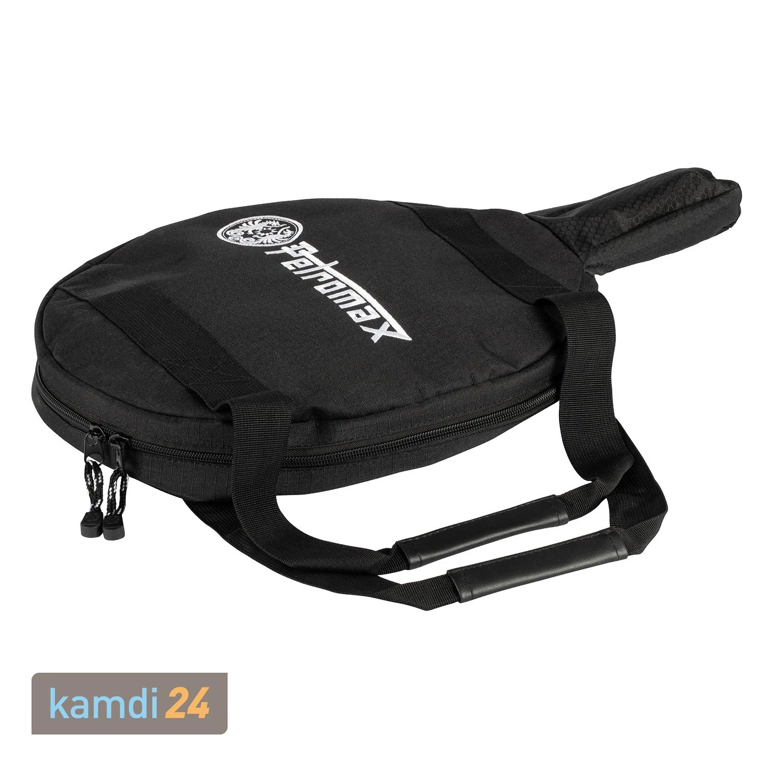 Im Inneren der Transporttasche, deren Deckel mit dem traditionellen Petromax-Drachenlogo und -Schriftzug versehen ist, finden Sie eine . Bei kann diese Grifftasche umgekrempelt werden und so den Griff vor Verschmutzungen und Stößen bewahren. Möchten Sie eine Pfanne mit zwei Henkeln und ohne Stiel in der Tasche aufbewahren, stülpen Sie die Grifftasche einfach ins Innere.