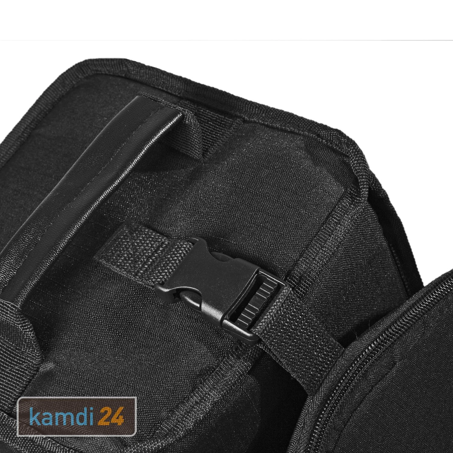 In der zweiteiligen von lassen sich die und der passende sicher aufbewahren und transportieren. Lampe und Schirm werden jeweils in einer verstaut. Anschließend können Sie beide Taschen via Klett- und Klick-Verschluss miteinander verbinden und bequem mit einer Hand tragen.