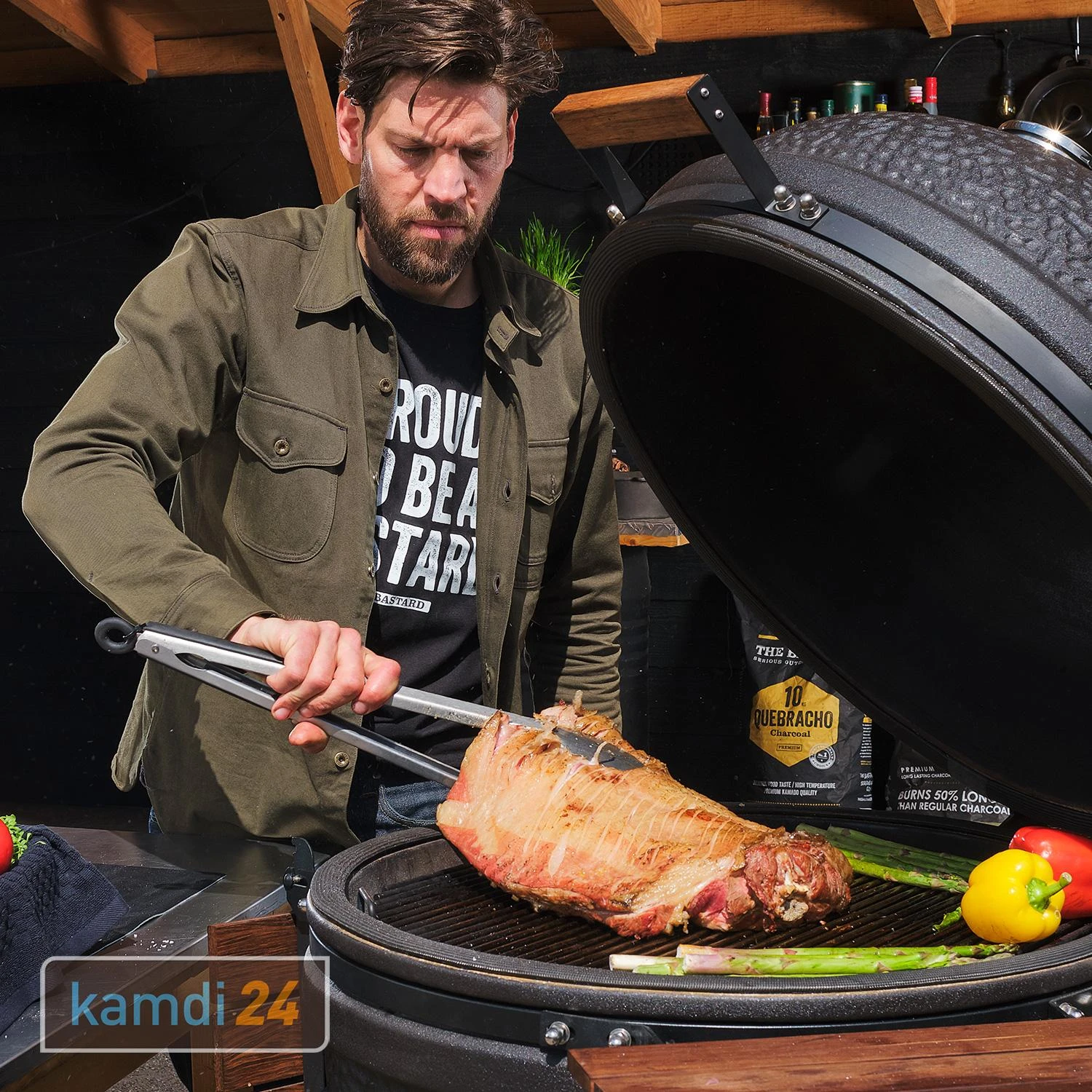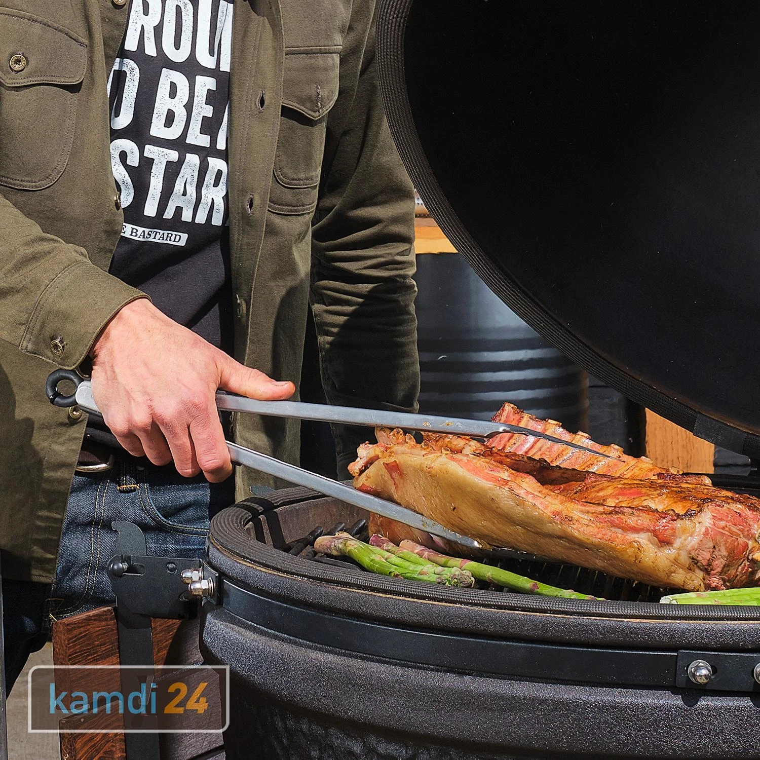 Mit der praktischen von können Sie Fleisch, Fisch oder Gemüse mühelos auf dem Grill platzieren und wenden. Dank der gezackten Greifschaufeln haben Sie dabei alles fest im Griff.