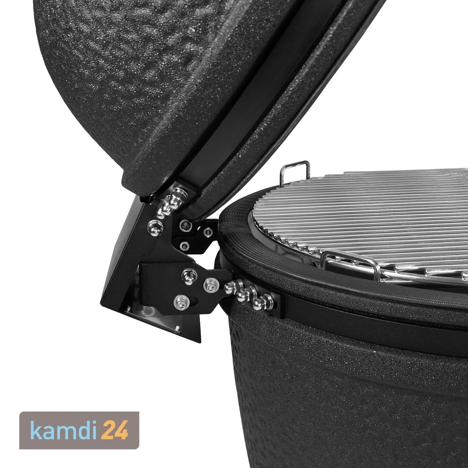 Die Infinity-Dichtung sorgt dafür, dass der Kamado besonders dicht verschlossen wird und die Temperatur im Inneren konstant hält. Zudem hält diese Art der Dichtung länger als oftmals verwendeter Filz.