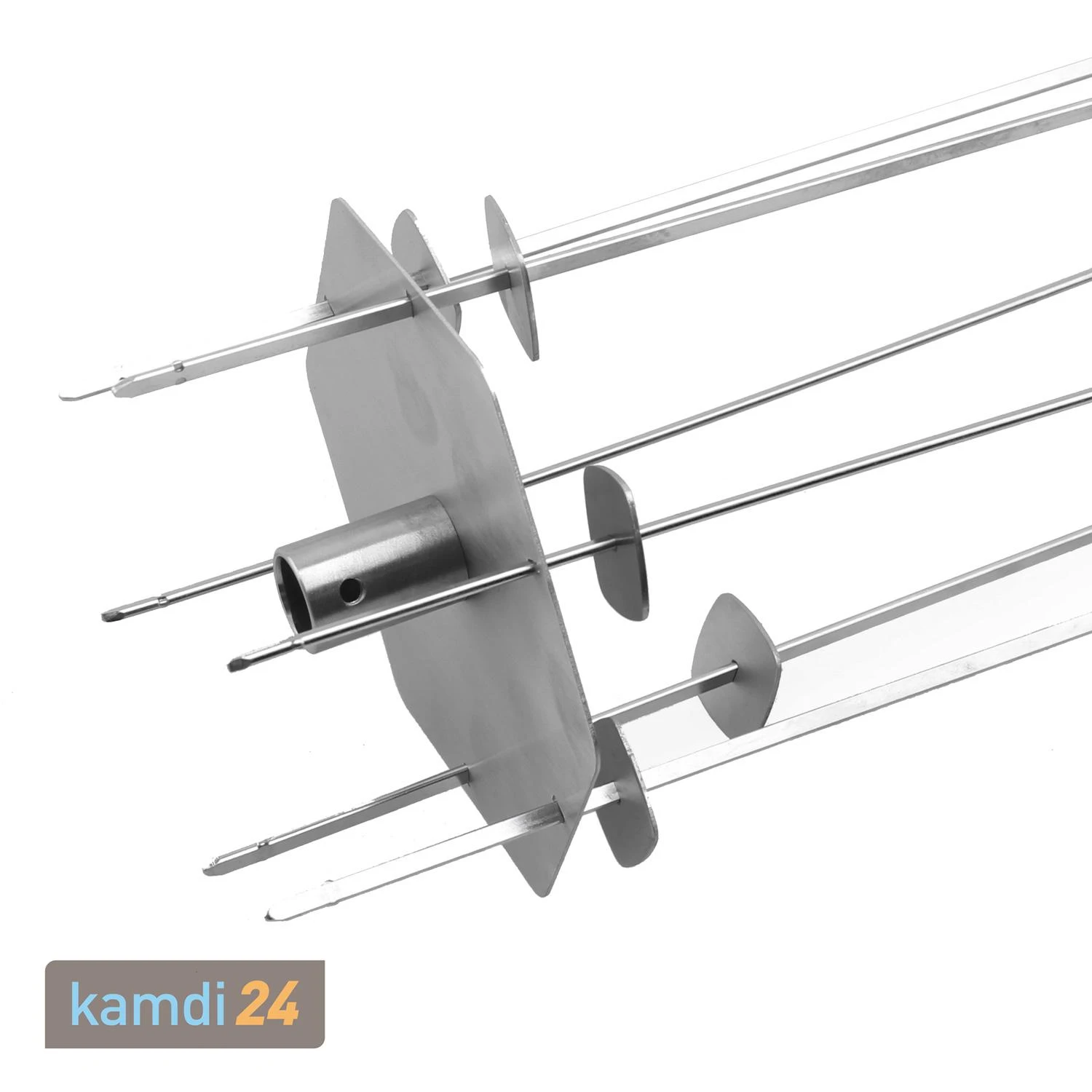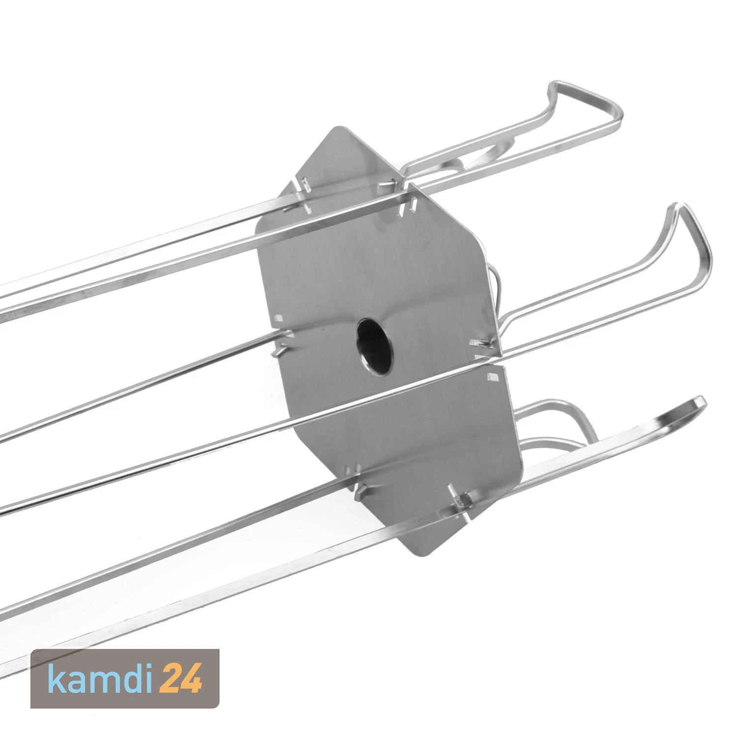 Grillen Sie Ihr Fleisch mithilfe des von . Während das Drehen einzelner Spieße mühsam ist, können Sie mit diesem Gestell Fleisch- oder Gemüsespieße ohne Mühe und Gefahr des Verbrennens wenden.