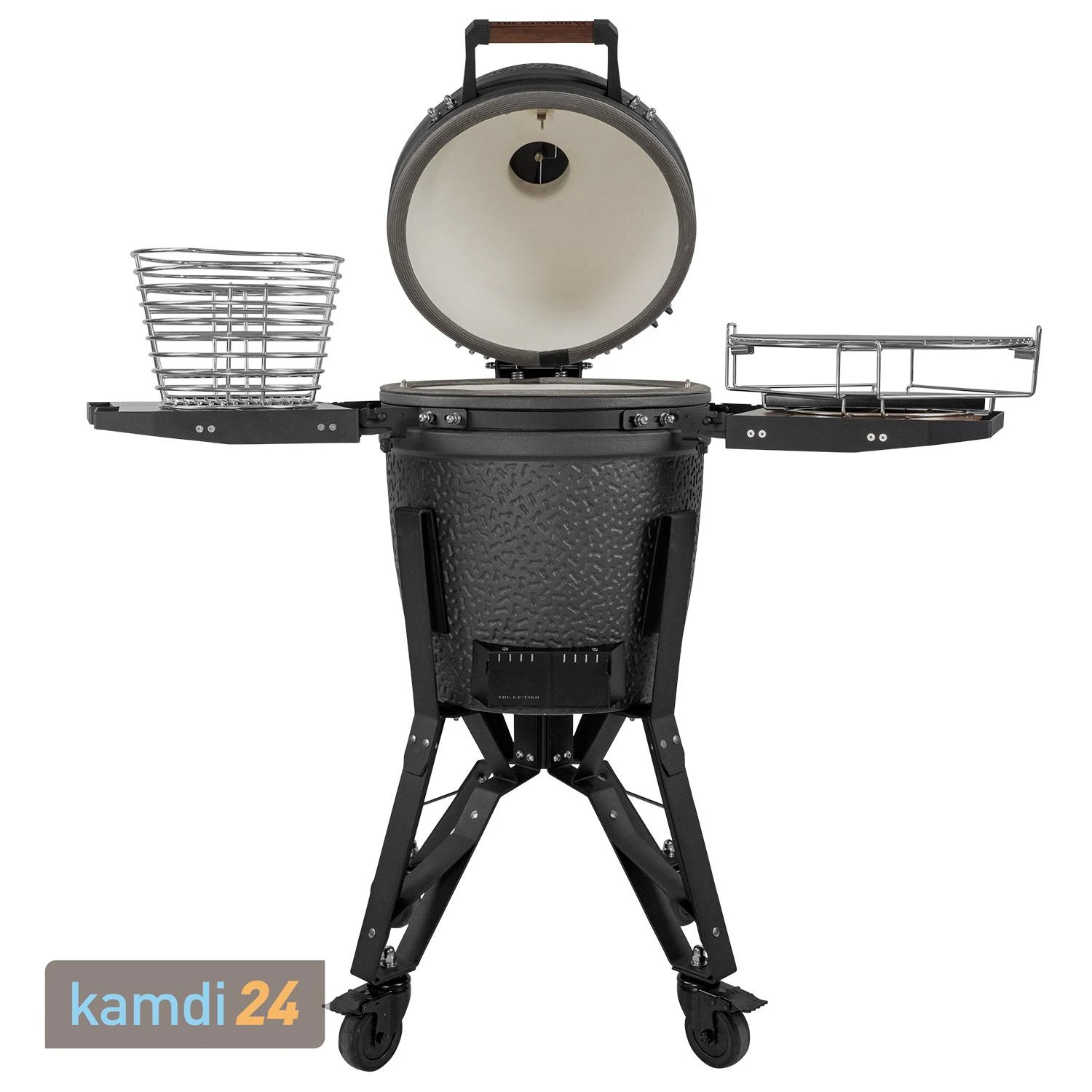 Standardmäßig ist der Grill mit zwei schwarz beschichteten Wärmedeflektoren und dem dazu passenden Stahlgestell ausgestattet. Die halbmondförmigen Wärmeplatten ermöglichen das indirekte Grillen mit dem Keramikgrill. Zudem bietet das Gestell zahlreiche weitere Einsatzmöglichkeiten mit dem passenden Zubehör von The Bastard, wie beispielsweise dem Wok oder weiteren Grillrosten.