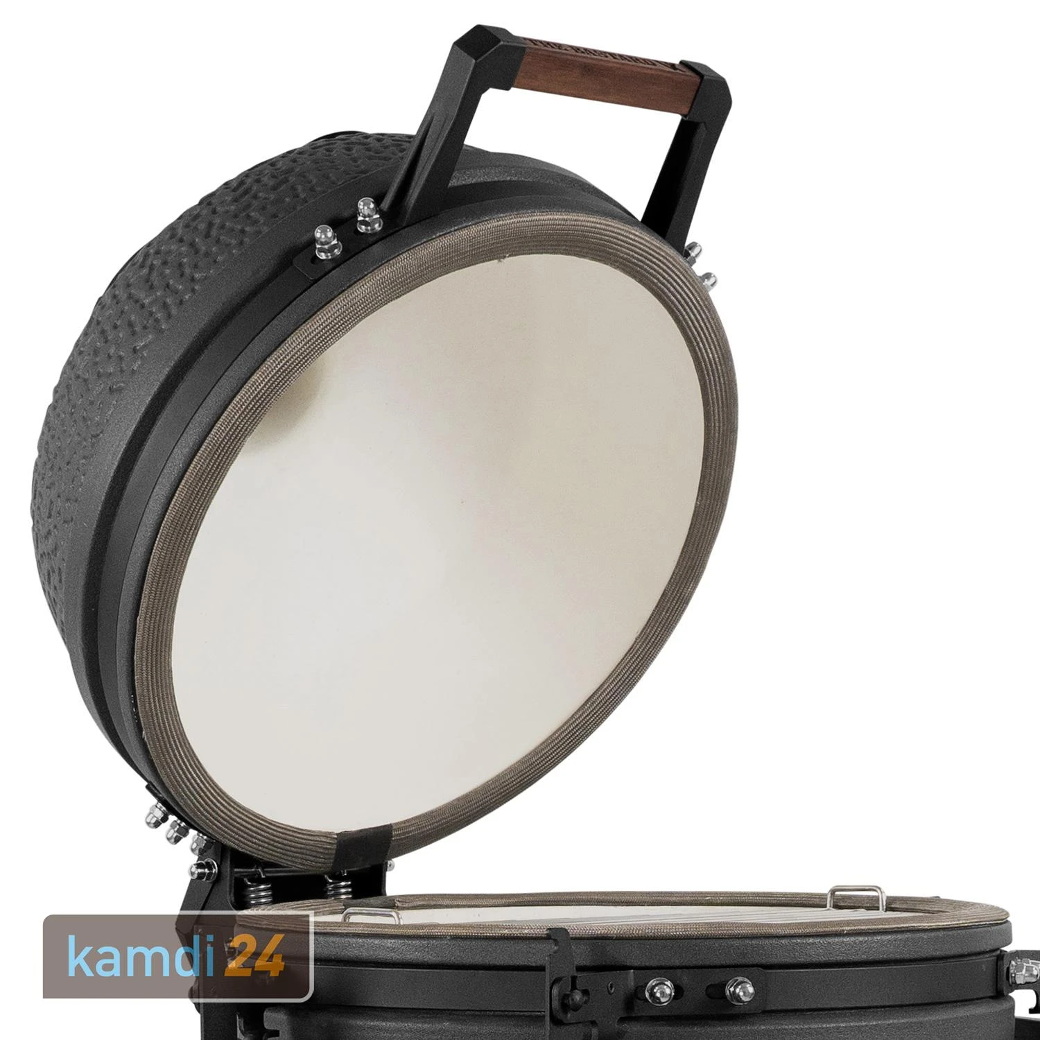 Die sorgt dafür, dass der Kamado besonders dicht verschlossen wird und die Temperatur im Inneren konstant hält. Zudem hält diese Art der Dichtung länger als oftmals verwendeter Filz.