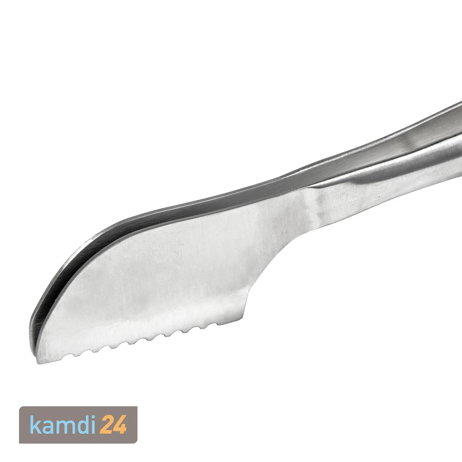 Wurst, Steak oder Gemüse? Egal, was auf Ihren Grill kommt, mit der hochwertigen von wenden Sie alles. Die Zange besteht aus und ist mit einem versehen. Mit der am unteren Teil des halten Sie Ihr Grillgut sicher. Die Zange ist nicht spülmaschinengeeignet.