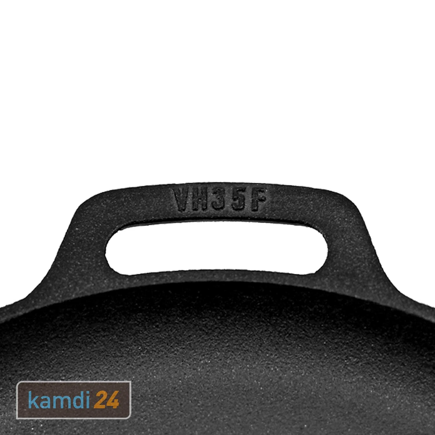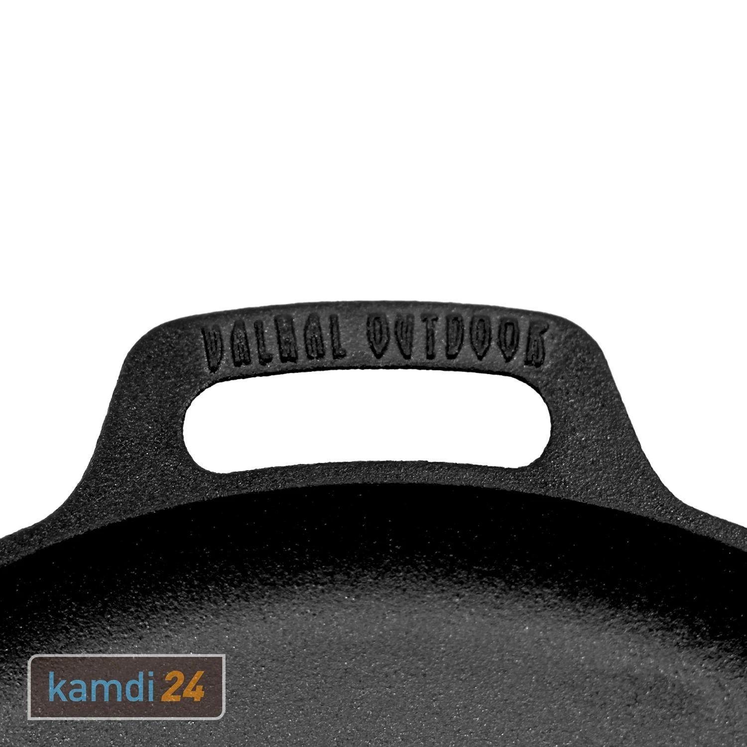 Die große kann auf dem Grill oder auf Holzkohle zum Einsatz kommen. Gusseisen eignet sich darüber hinaus auch für alle gängigen Herdarten und macht die Pfanne damit zu einem idealen Begleiter für die heimische Küche.