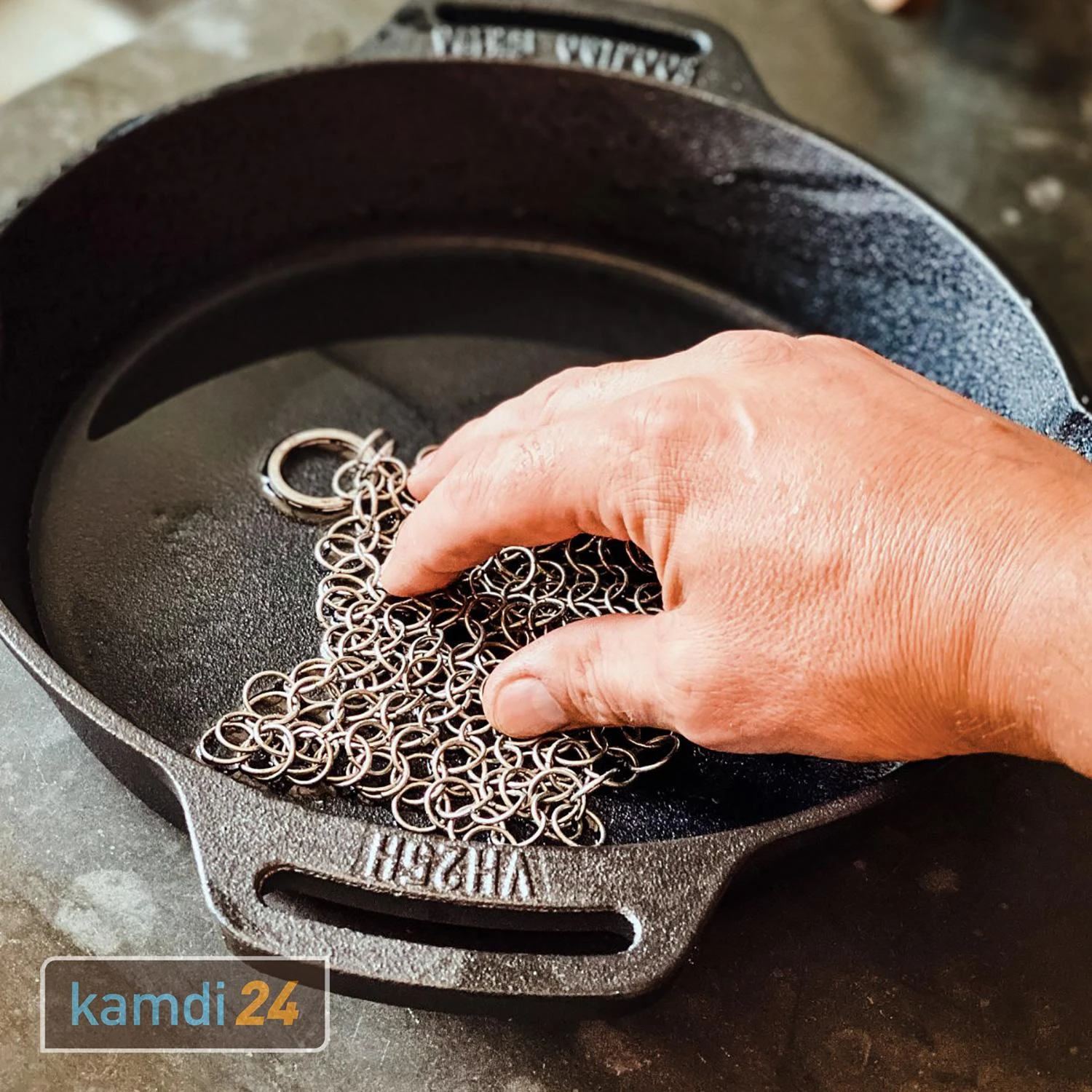 Der von besteht aus rostfreiem Stahl und ist ein ideales Hilfsmittel für die Reinigung von aus Gusseisen. Mithilfe der Edelstahlringe entfernen Sie leicht eingebackene Speisereste, ohne dabei die Patina des Gusseisens zu beschädigen. Zudem können Sie auf Reinigungsmittel verzichten. Dank der hochwertigen Verarbeitung kann der Ringreiniger immer wieder verwendet werden.