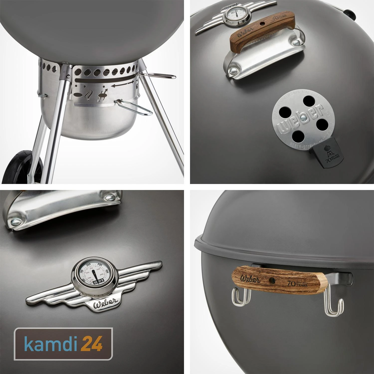 Neben dem einzigartigen Design überzeugt der 70th Anniversary Edition Kettle auch mit seinen technischen Details: Mit einer Grillfläche von 2342 cm² ist er ideal für große Grillpartys geeignet. Der und der sorgen für eine komfortable Handhabung des . Die Allwetter-Gummiräder machen den Grill zu jeder Zeit mobil und einfach zu bewegen.
