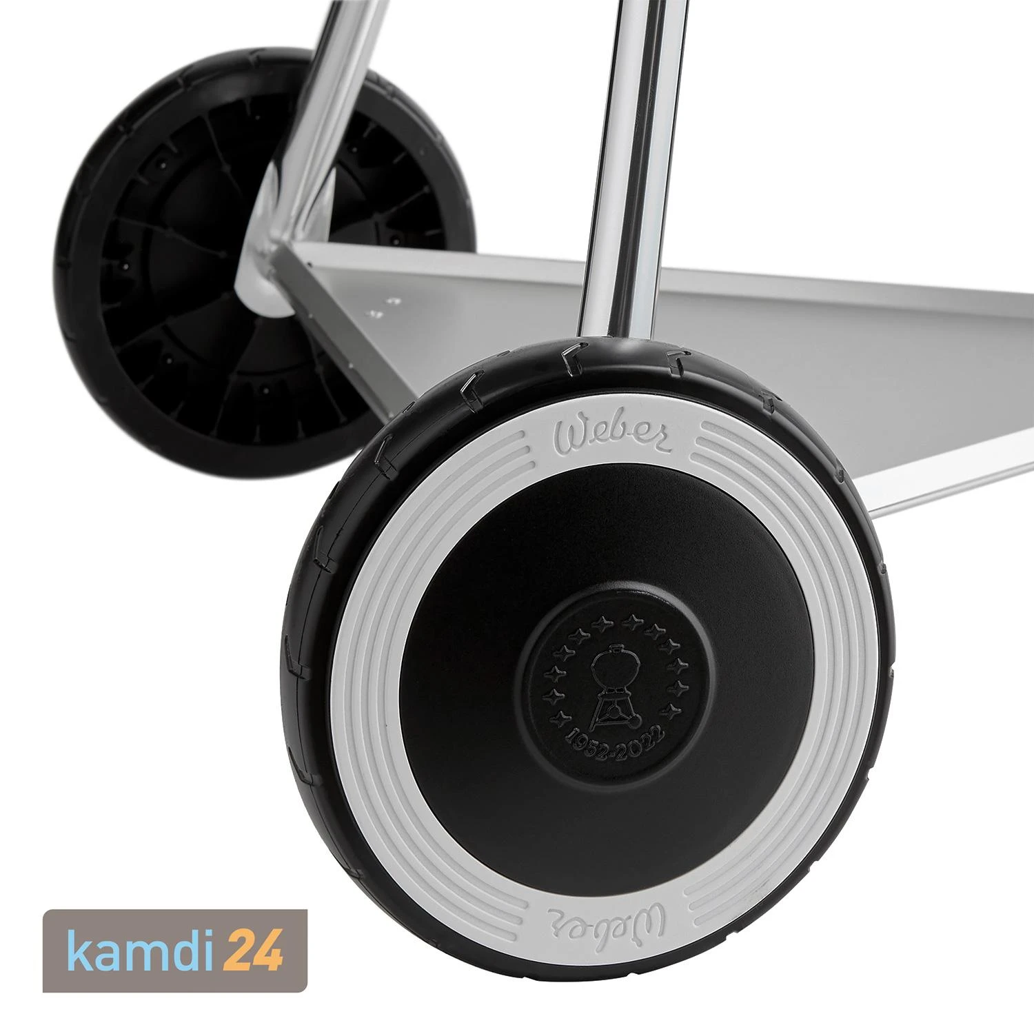 Die Räder des mit Weißwandreifen haben eine gummierte Lauffläche und ermöglichen ein einfaches Verschieben des Grills an deinen gewünschten Aufstellort.
